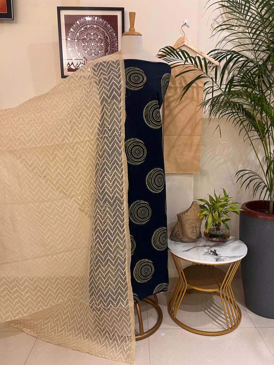 Kurta - Pure Cotton Ajrakh Natural Die Kurta (3mtr)