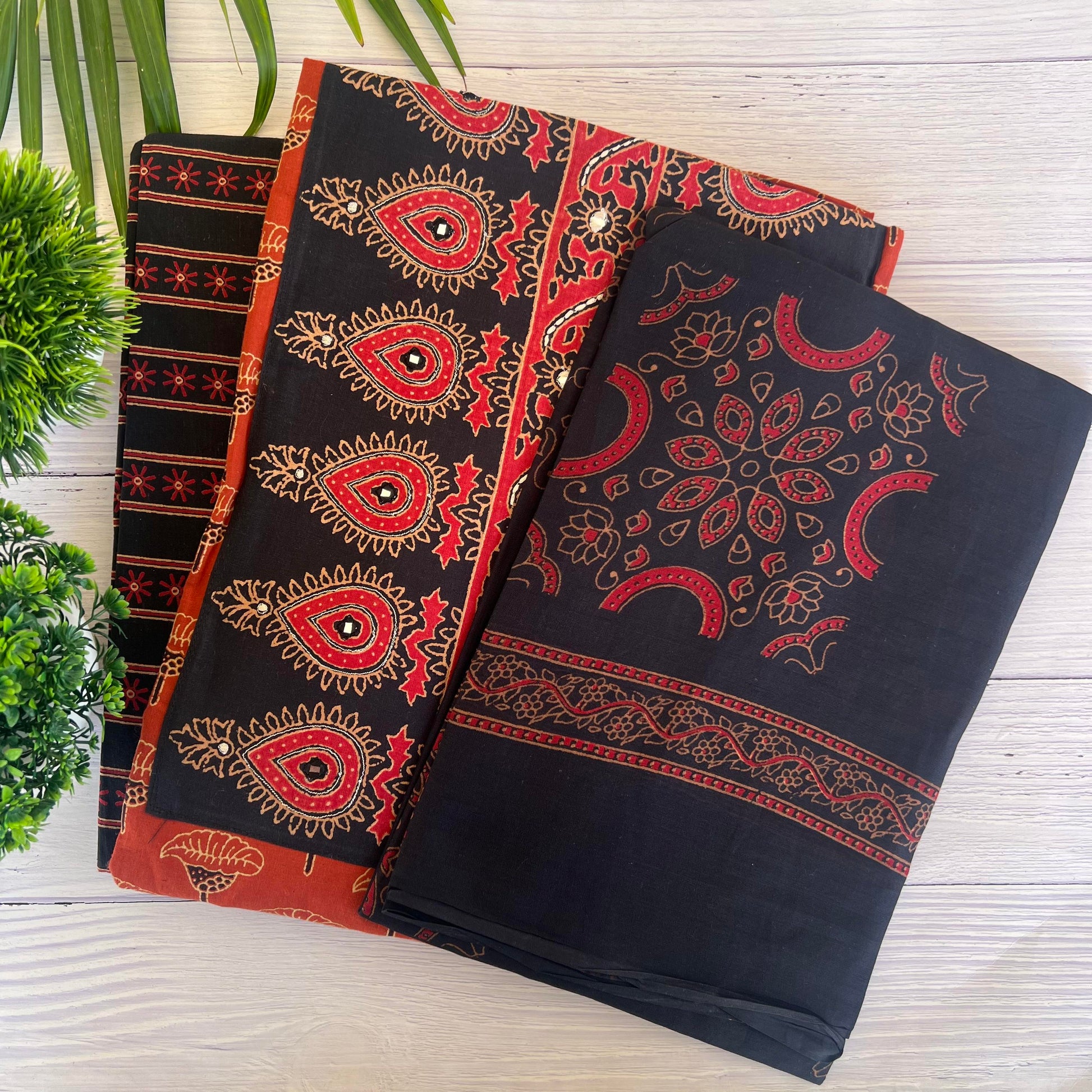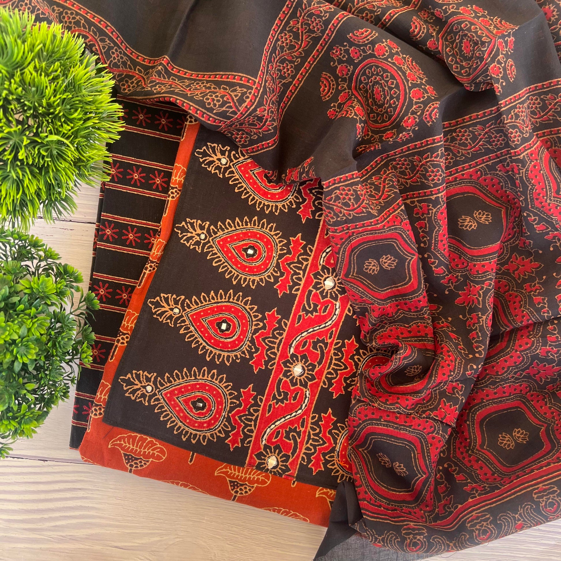 Kurta - Pure Cotton Natural Die Ajrakh Handwork Kurta (2.5Mtr)