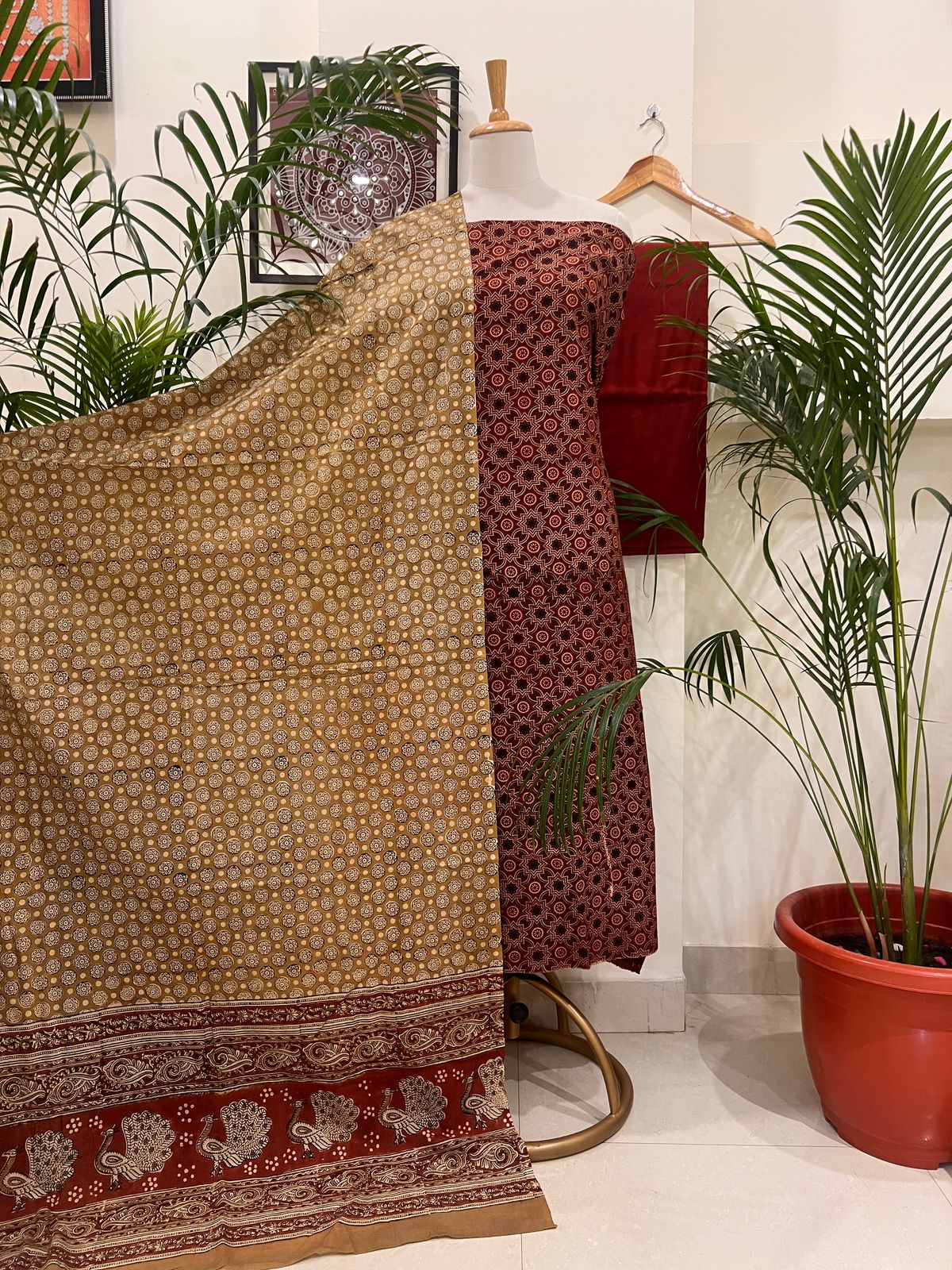 Kurta - Soft Ajrakh Block Print Kurta (2.5Mtr)