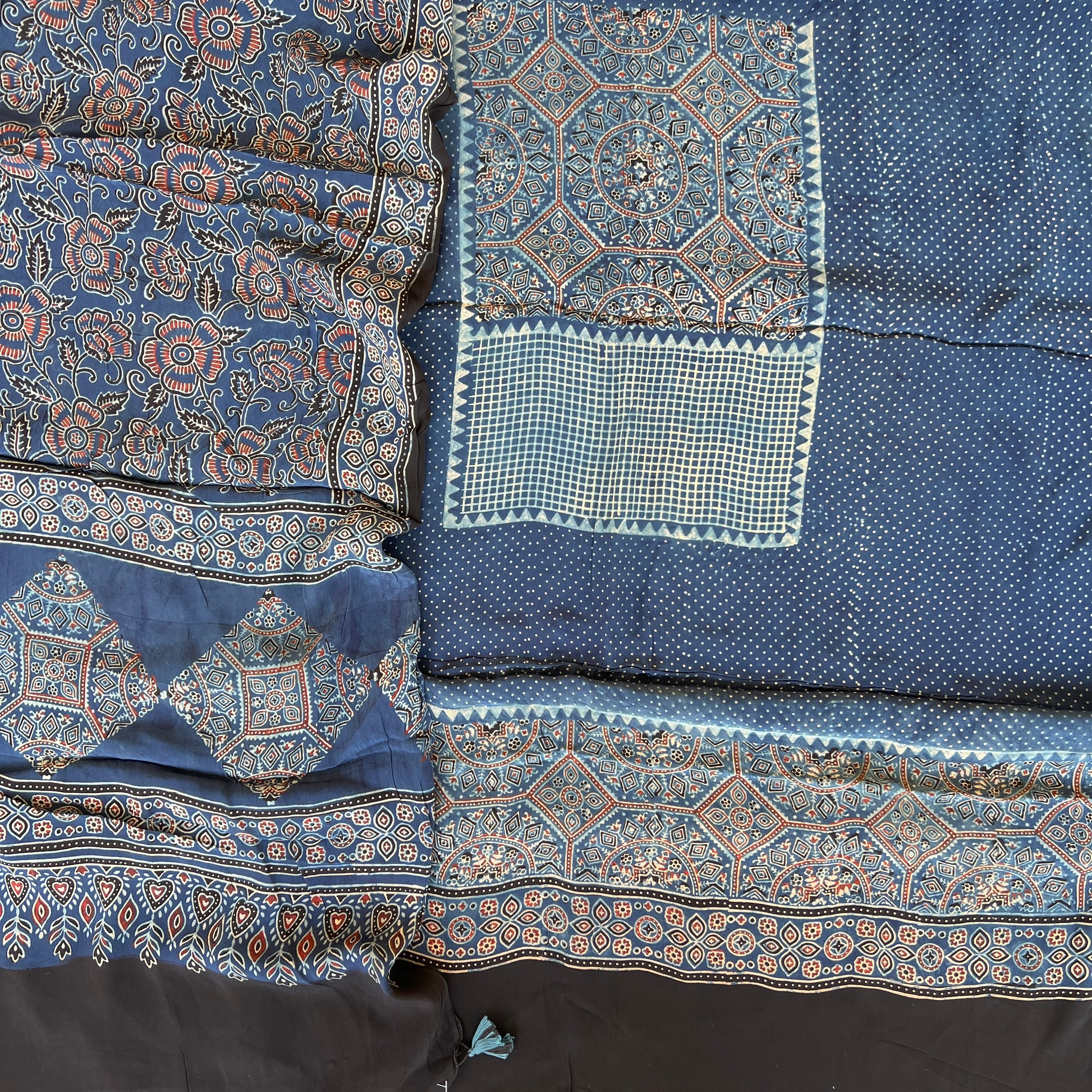 Dupatta - Fine Georgette Natural Die Ajrakh Dupatta (2.5Mtr)