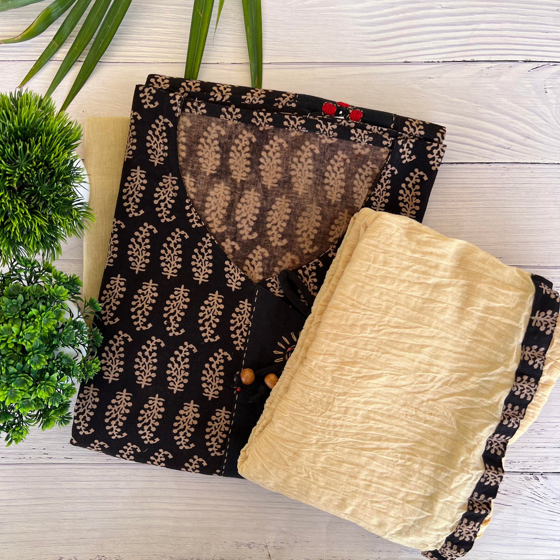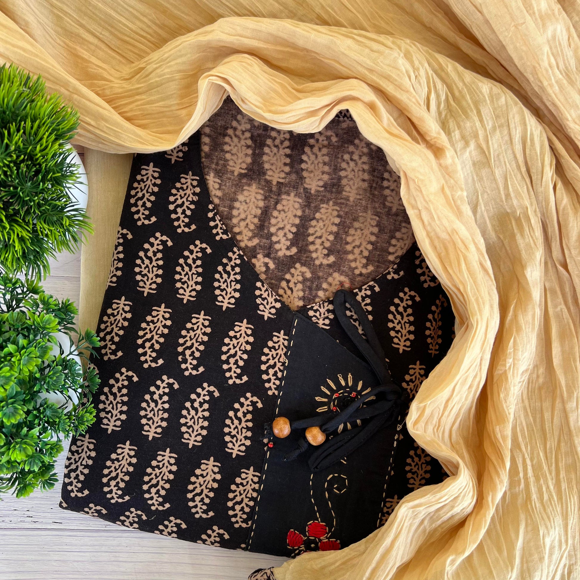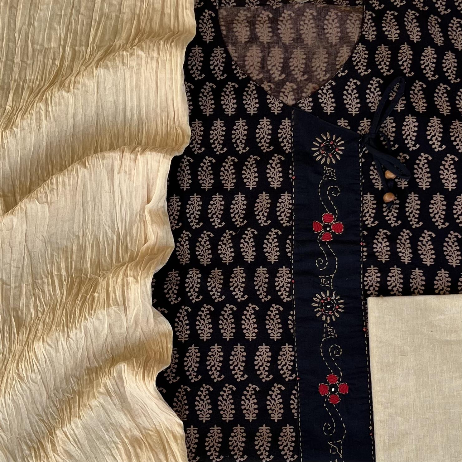 Kurta - Pure Cotton Bagh Embroidered Angarkha Neck Patter Kurta (2.5Mtr)