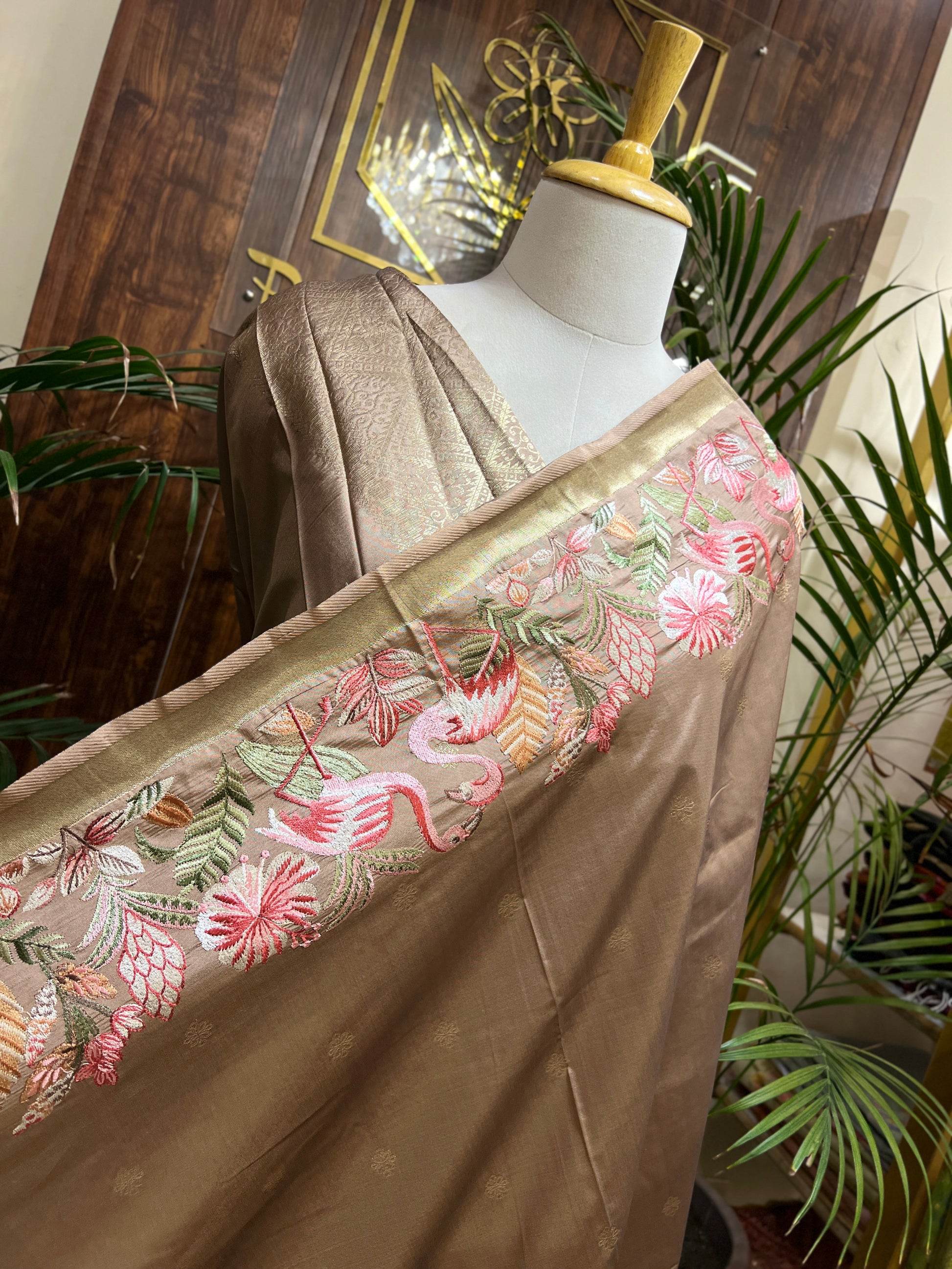 Exquisite Fine Banarasi Silk Saree featuring a finely embroidered border all over the drape, paired with a richly woven heavy Banarasi blouse – a true reflection of timeless elegance and royal craftsmanship. ✨💫