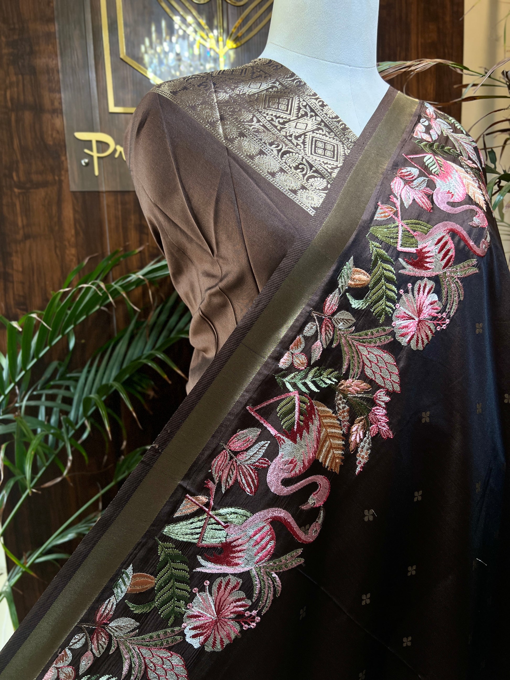 Exquisite Fine Banarasi Silk Saree featuring a finely embroidered border all over the drape, paired with a richly woven heavy Banarasi blouse – a true reflection of timeless elegance and royal craftsmanship. ✨💫