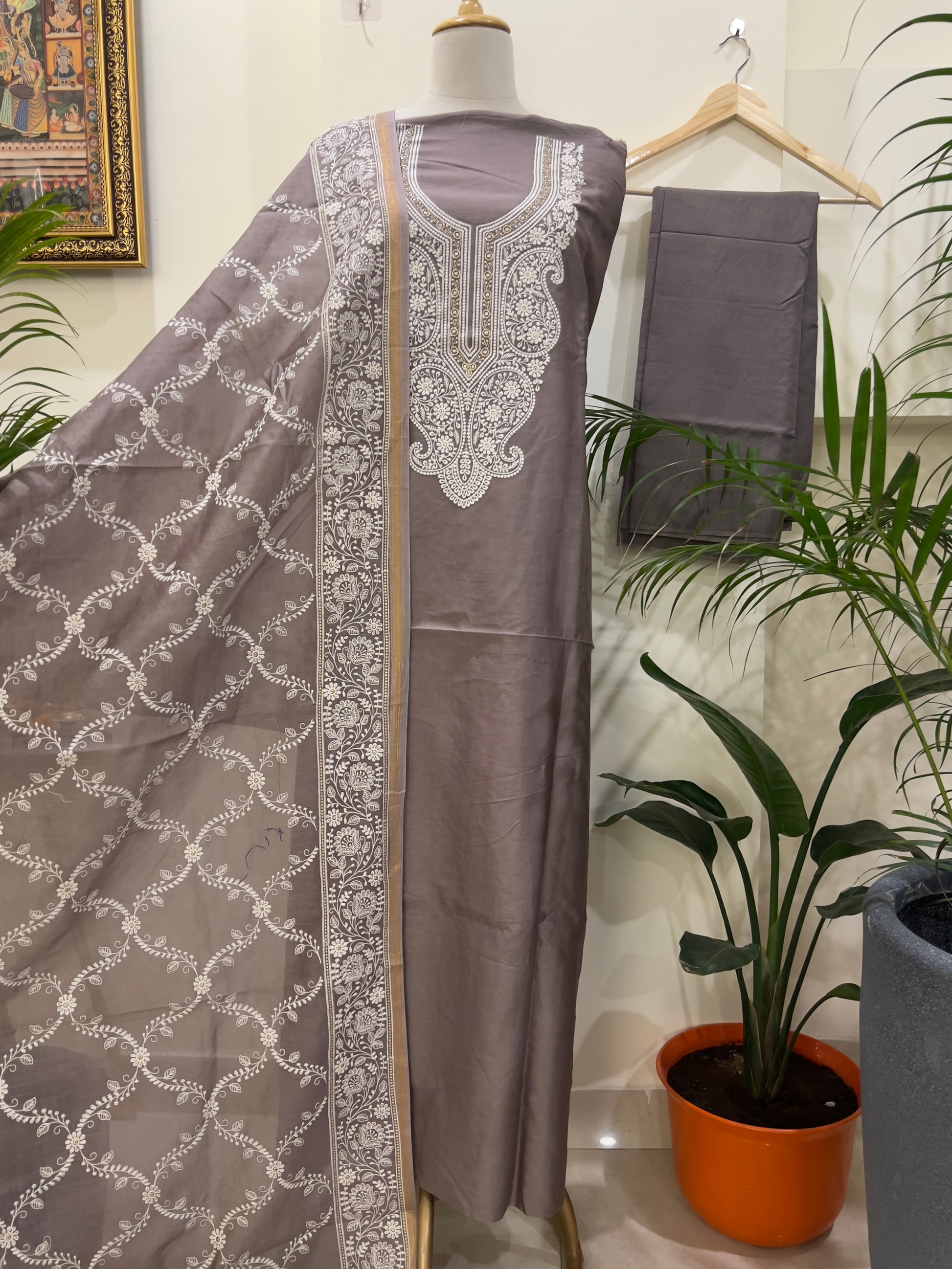 Kurta - Pure Chanderi Silk Fine Aari Hand Embroidery Work Kurta (2.5Mtr)
