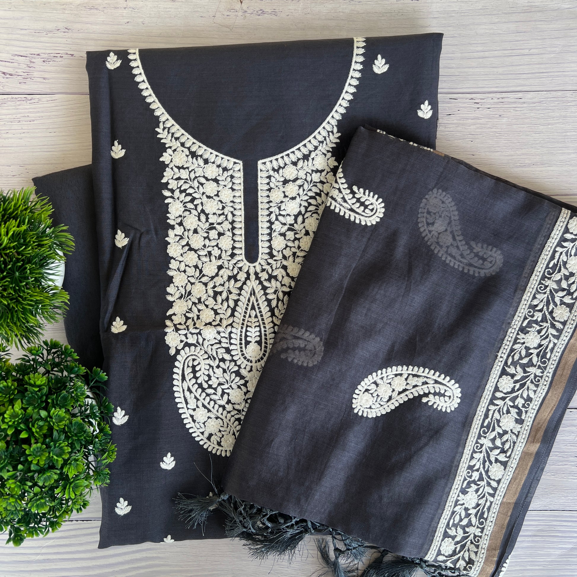 Dupatta - Pure Chanderi Silk Fine Aari Hand Embroidery Work & Handmade Tussles Dupatta (2.5Mtr)