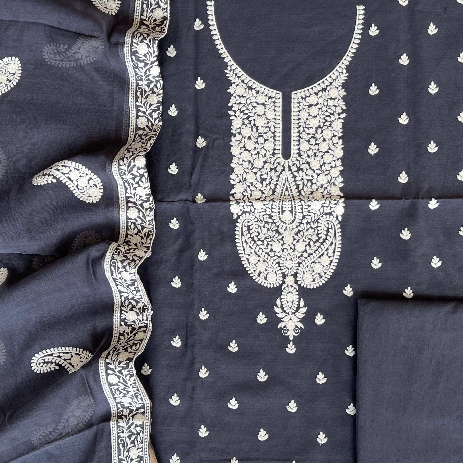 Kurta - Pure Chanderi Silk Fine Aari Hand Embroidery Work Kurta (2.5Mtr)
