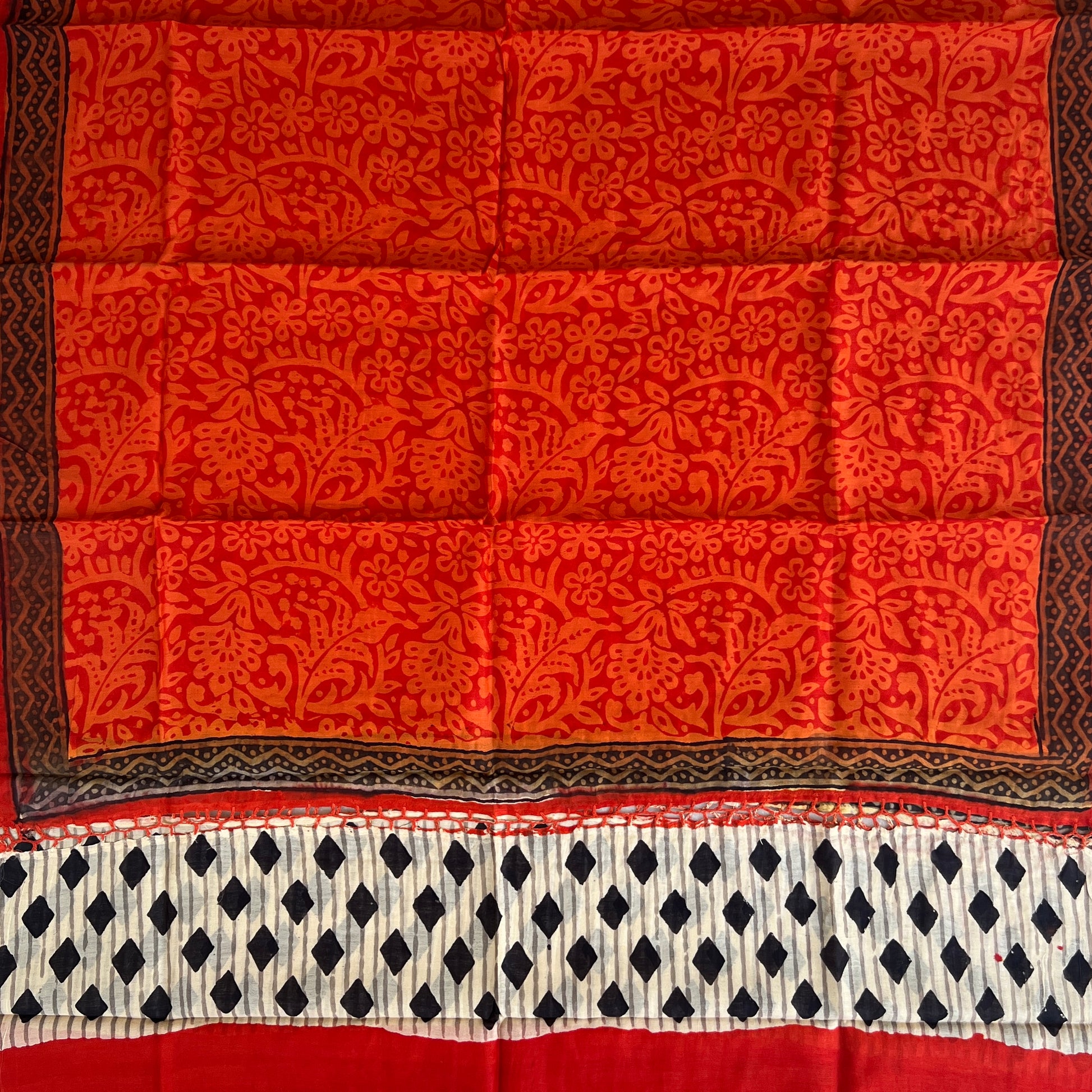 Dupatta - Pure Chanderi SIlk Rapid Block Print With Crochet Border (2.25Mtr)