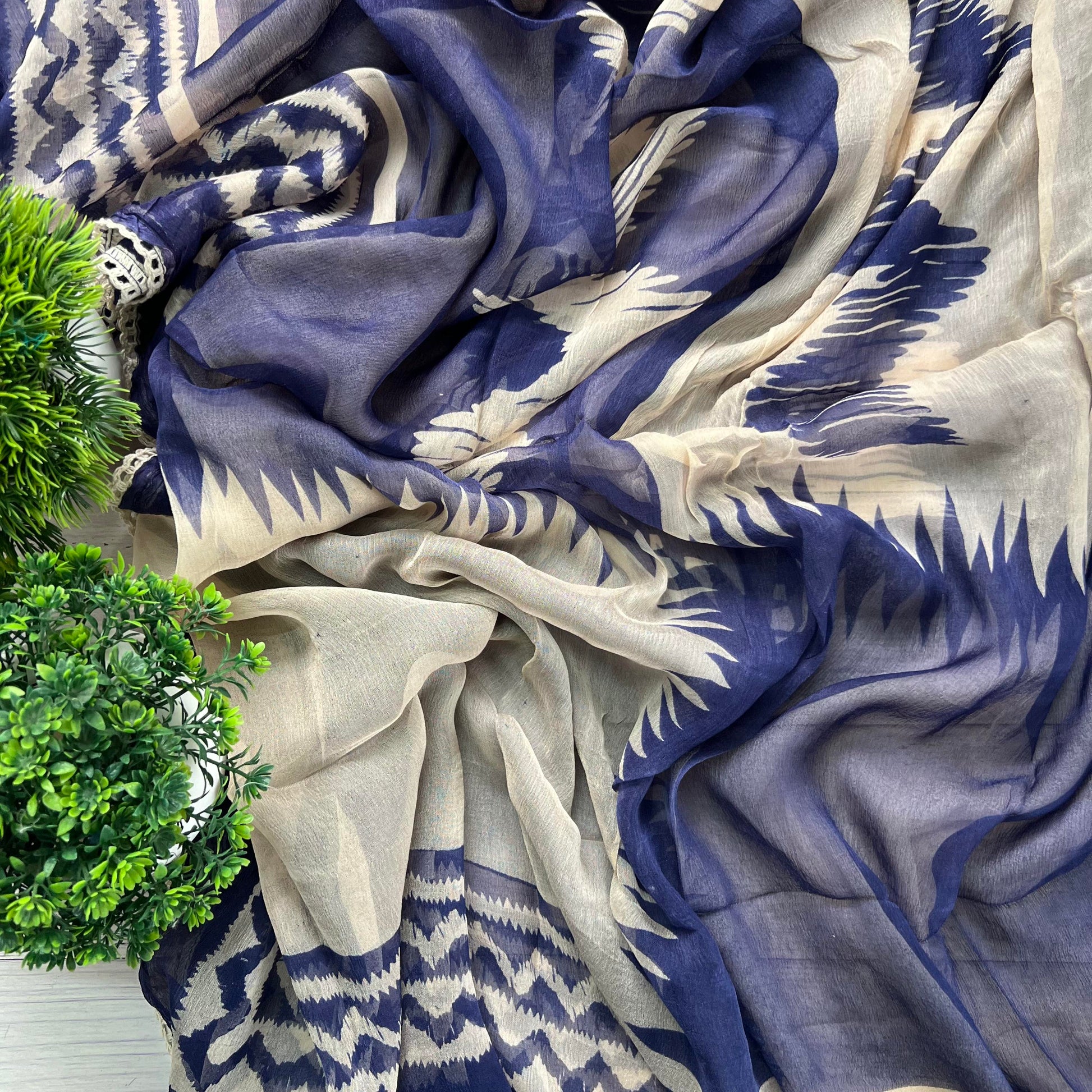 Dupatta - Pure Chiffon Block Print Dupatta With Crochet Border (2.5Mtr)
