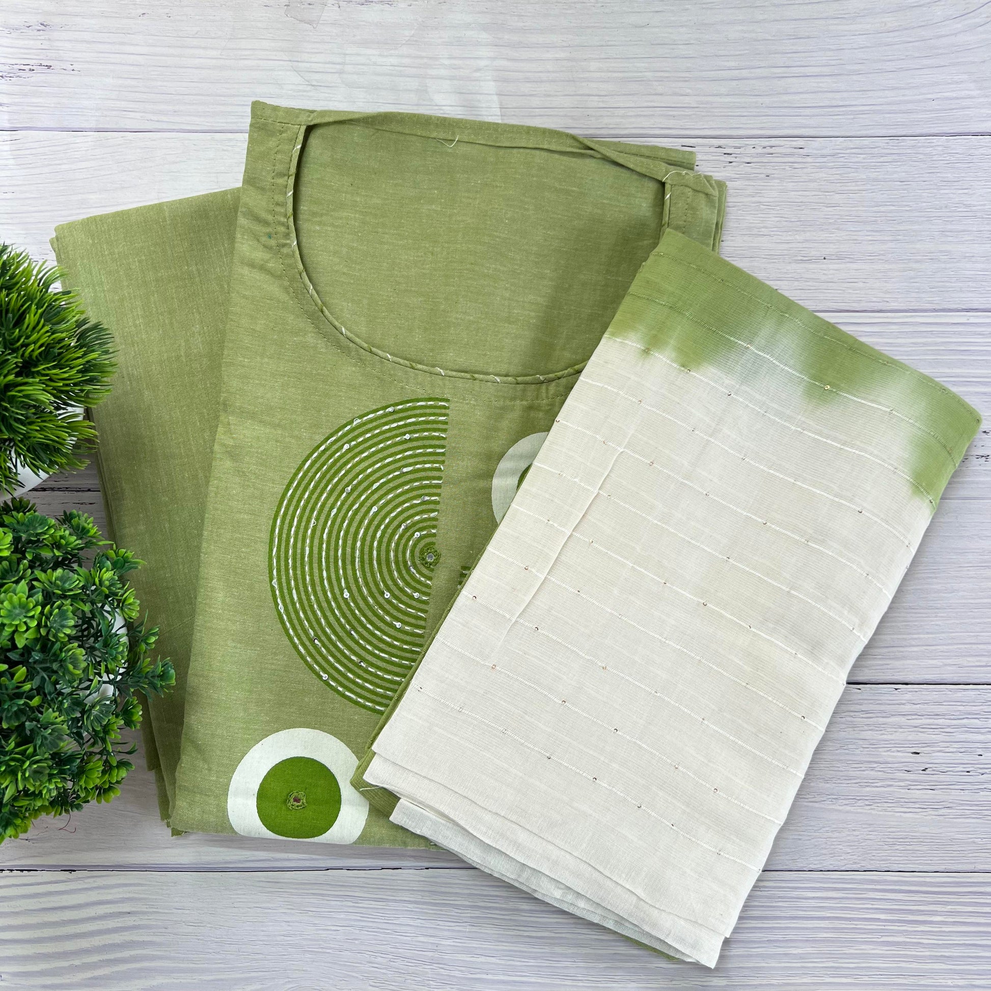 Kurta - Pure Cotton Geometric Print Kurta With Fine Handwork (2.5Mtr)