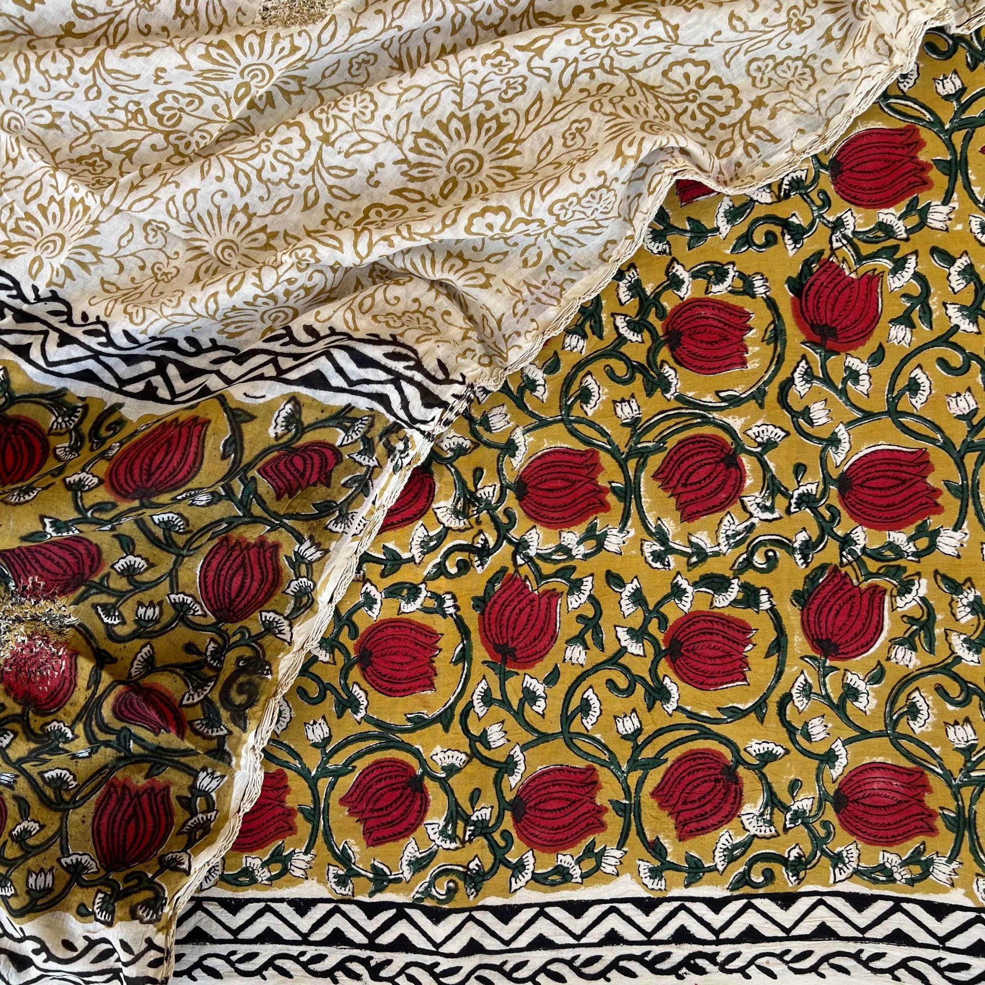 Dupatta - Pure Cotton Block Print Kalamkari With Crochet Work & Border Dupatta (2.5Mtr)