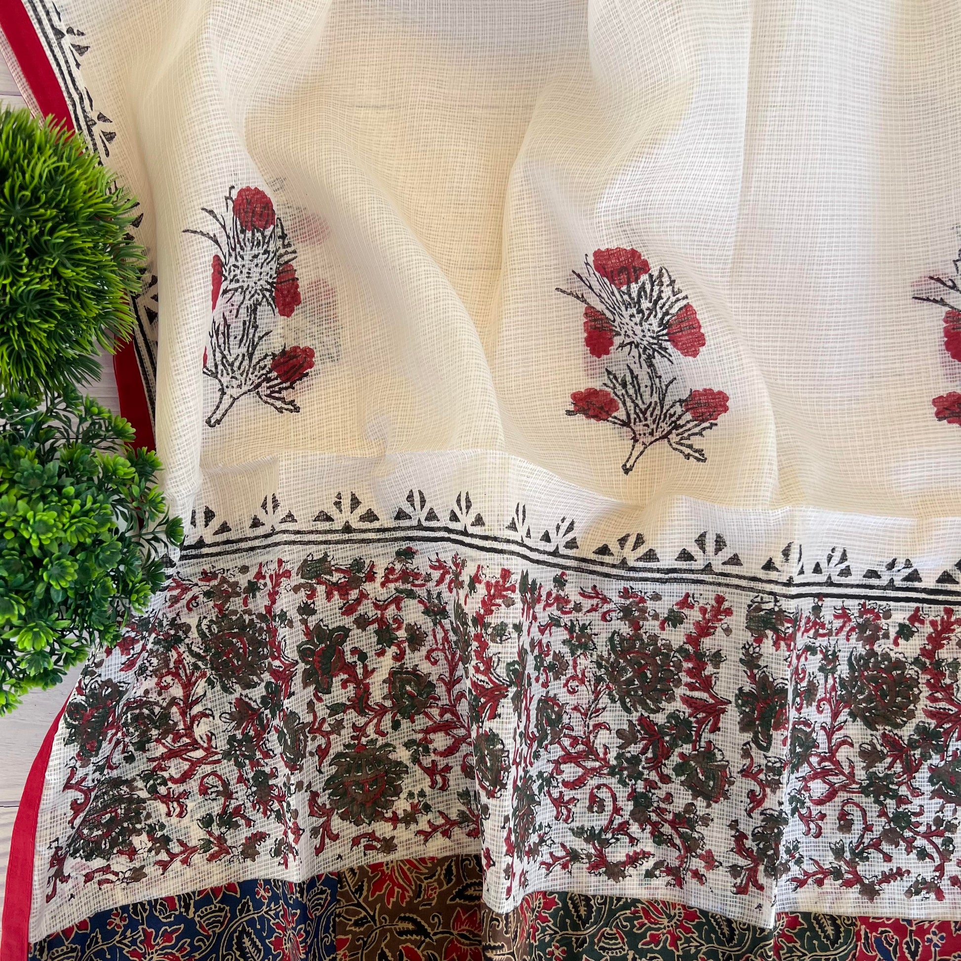 Dupatta - Kota Doriya Block Print Dupatta (2.5Mtr)