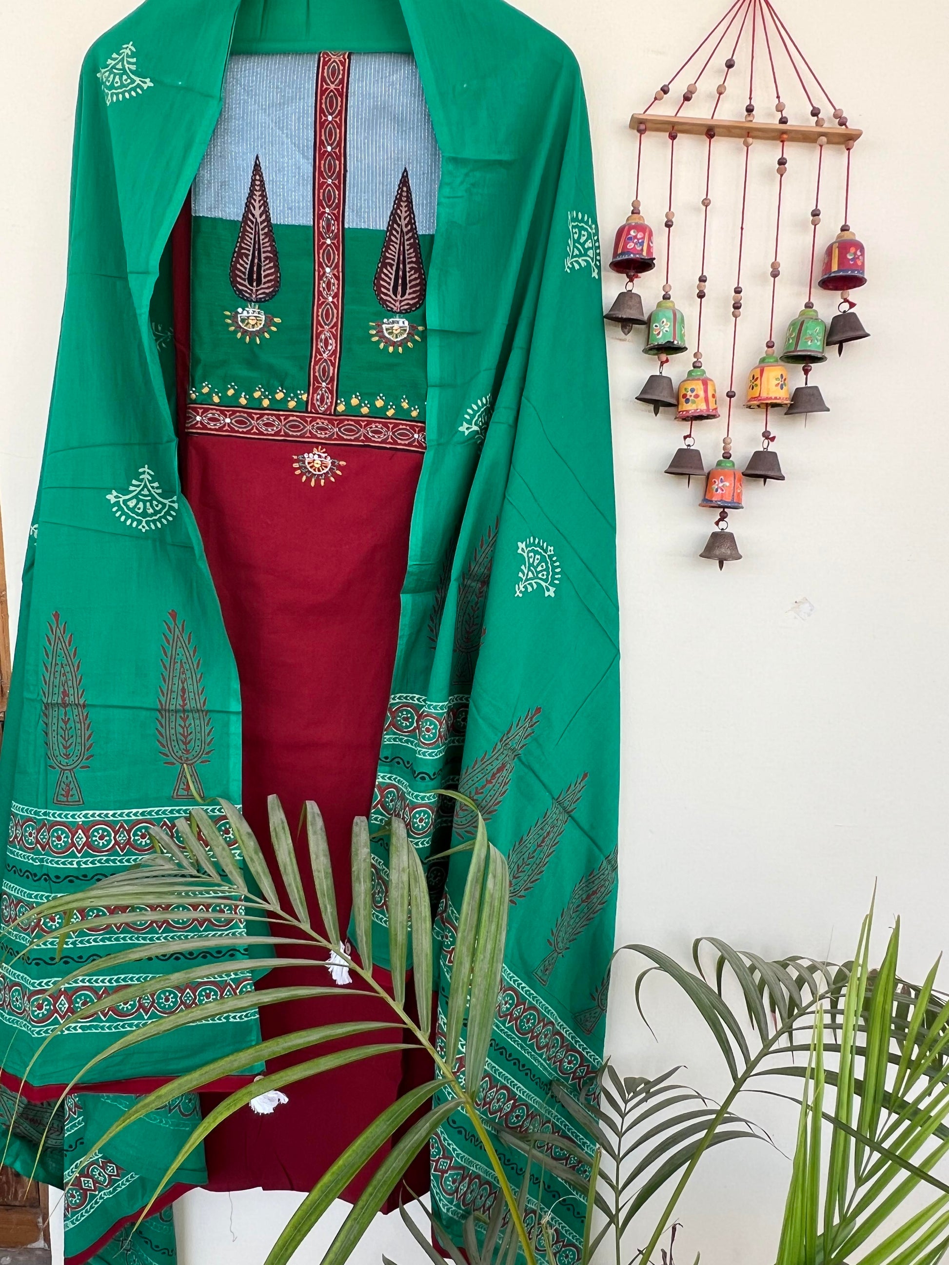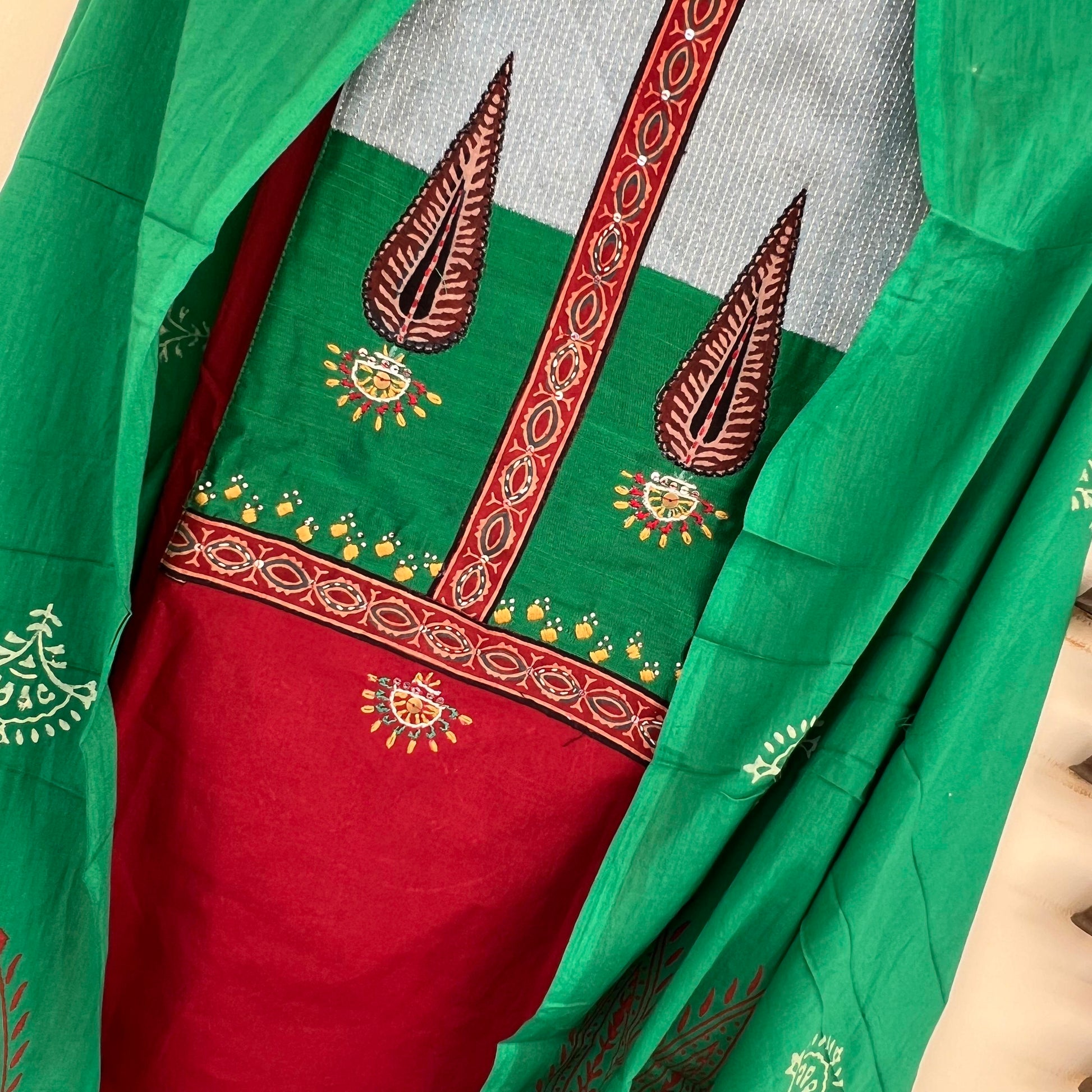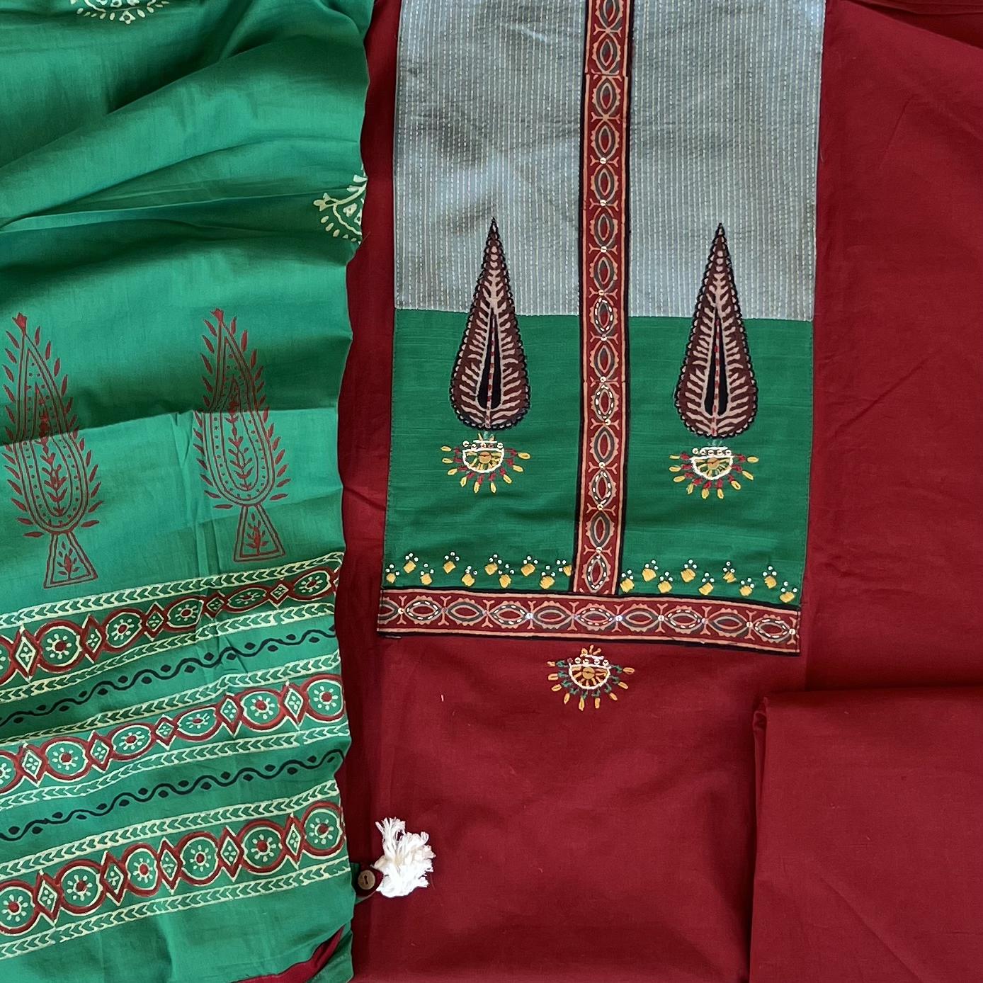 Kurta - Pure Cotton Patch Kantha Work Kurta (2.5Mtr)