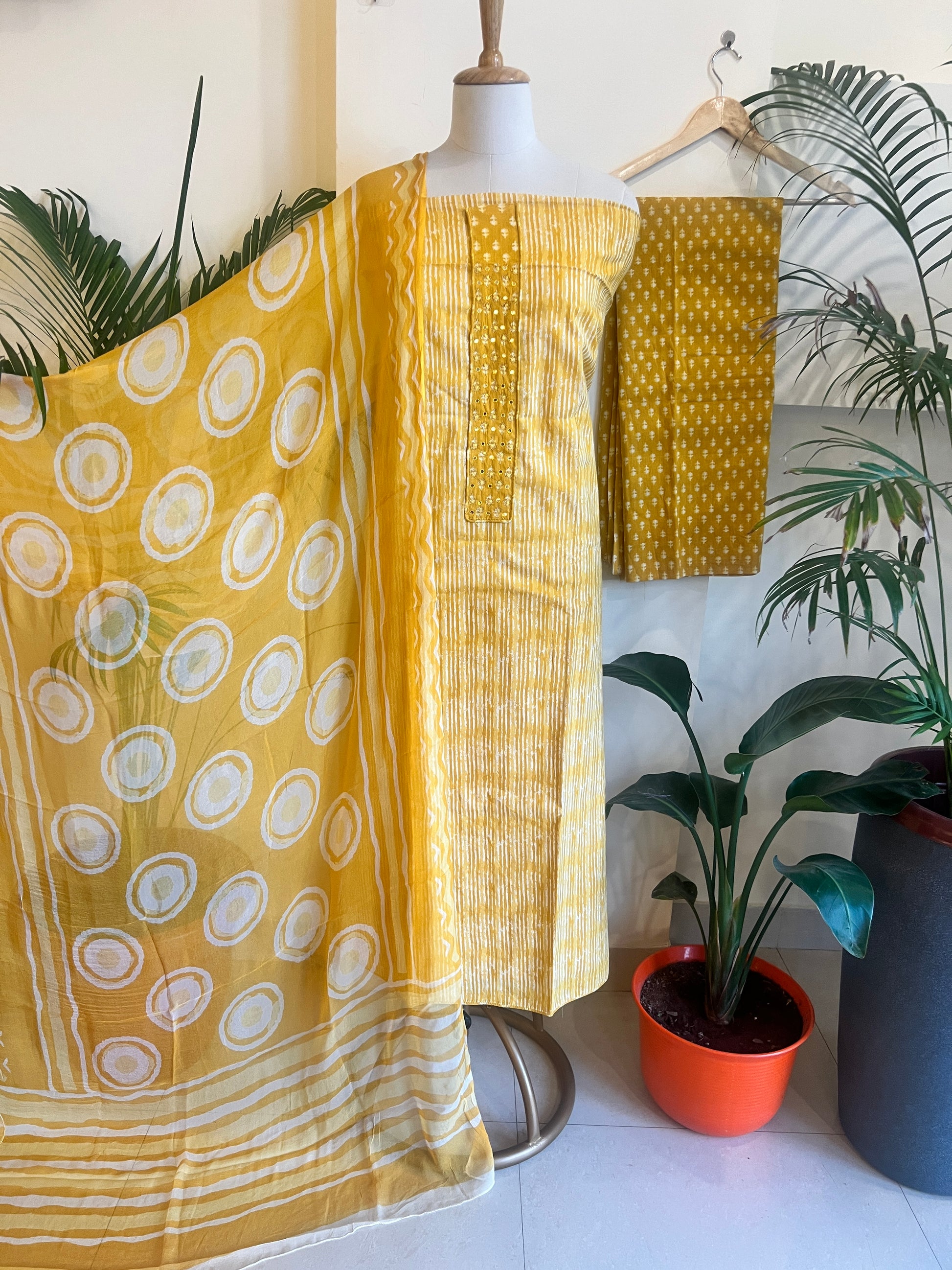 Kurta - Pure Cotton Block Print Kurta With Fine Work (2.5Mtr)