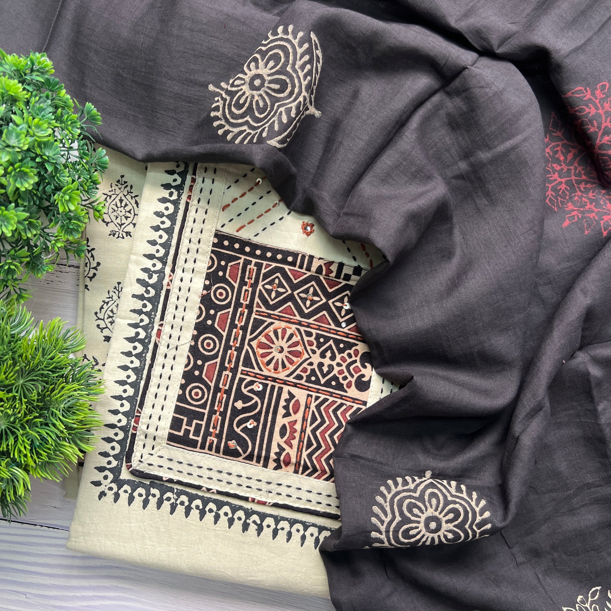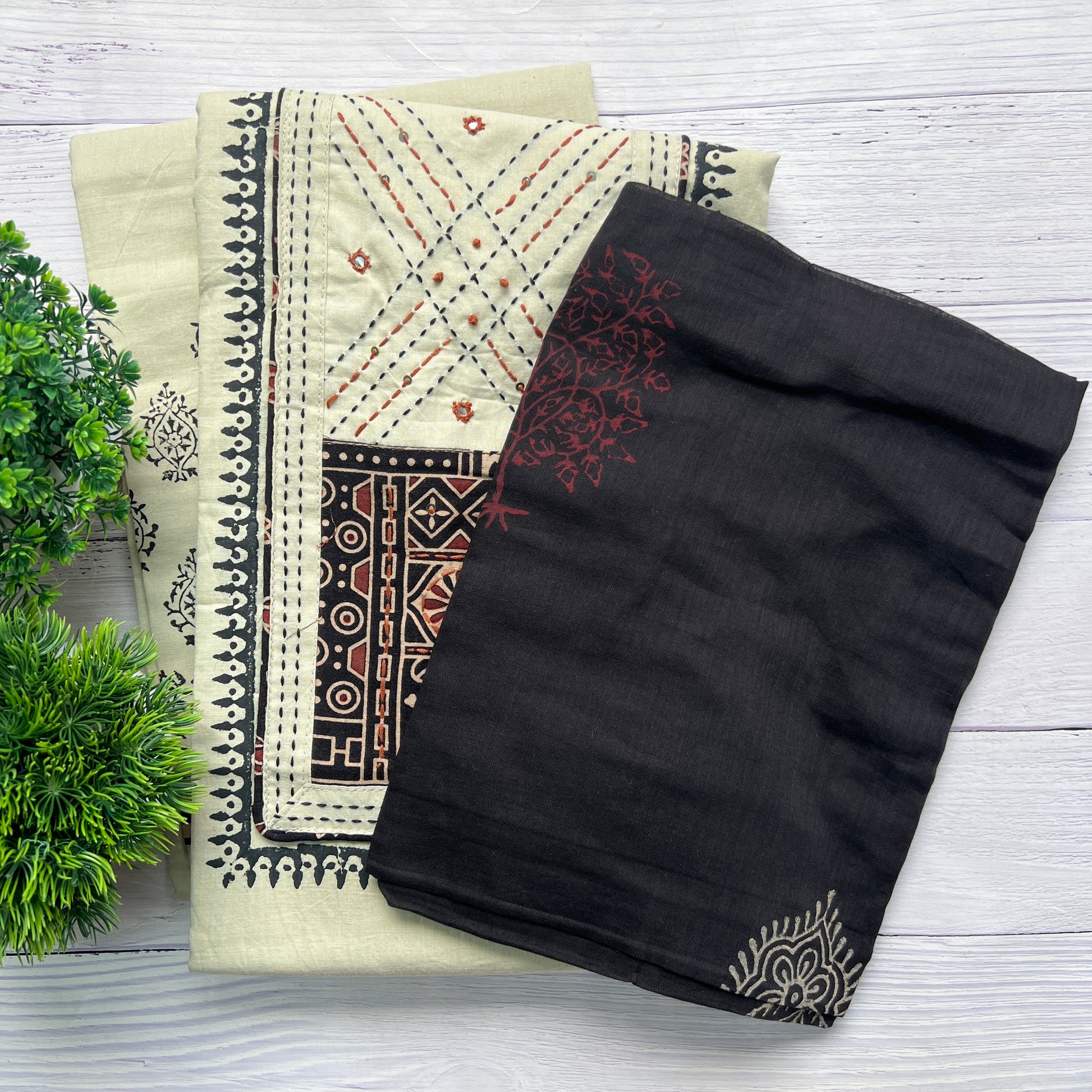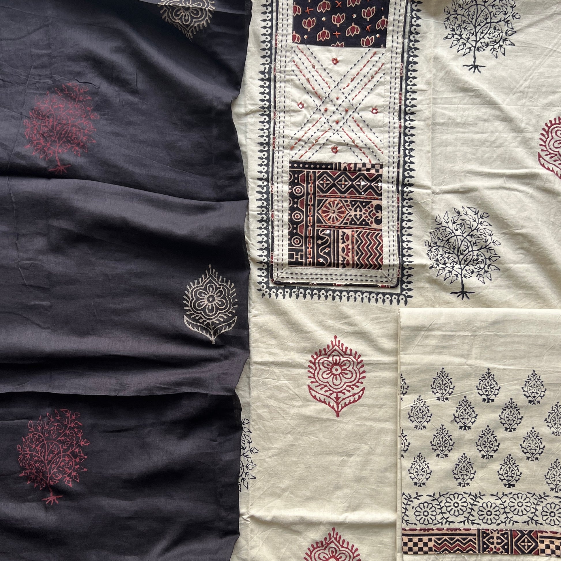 Kurta - Pure Cotton Block Print Kurta With Handwork (2.5Mtr)