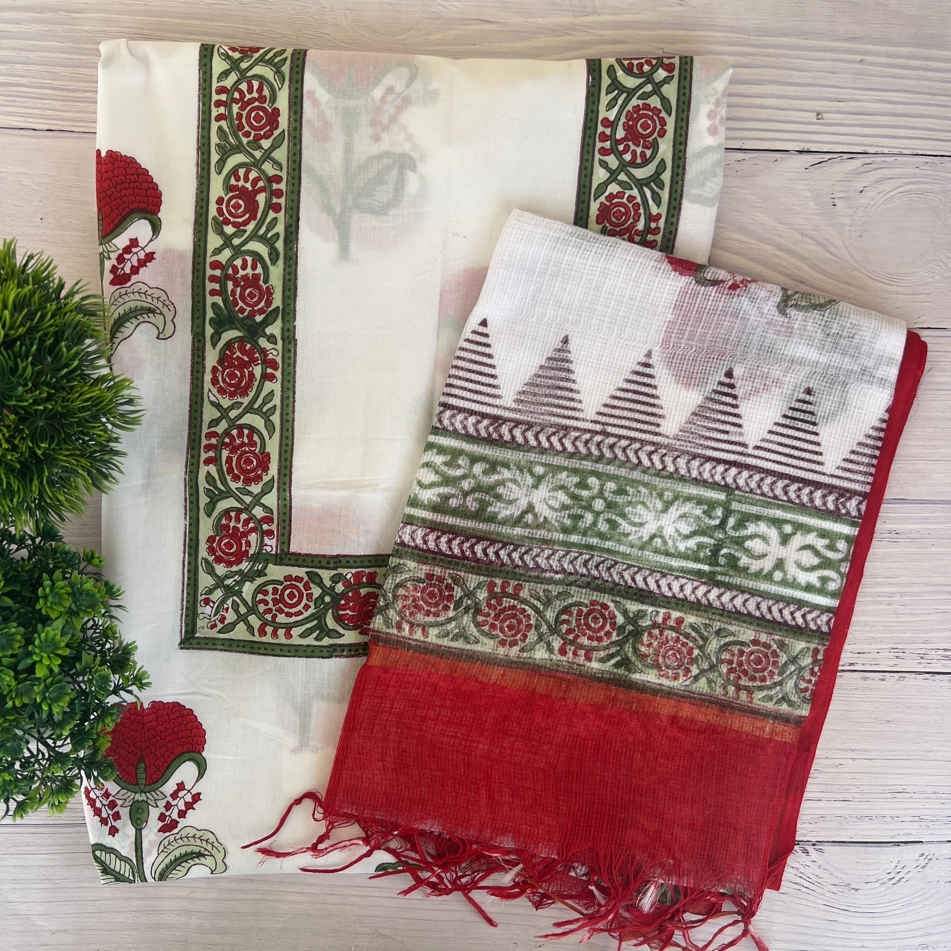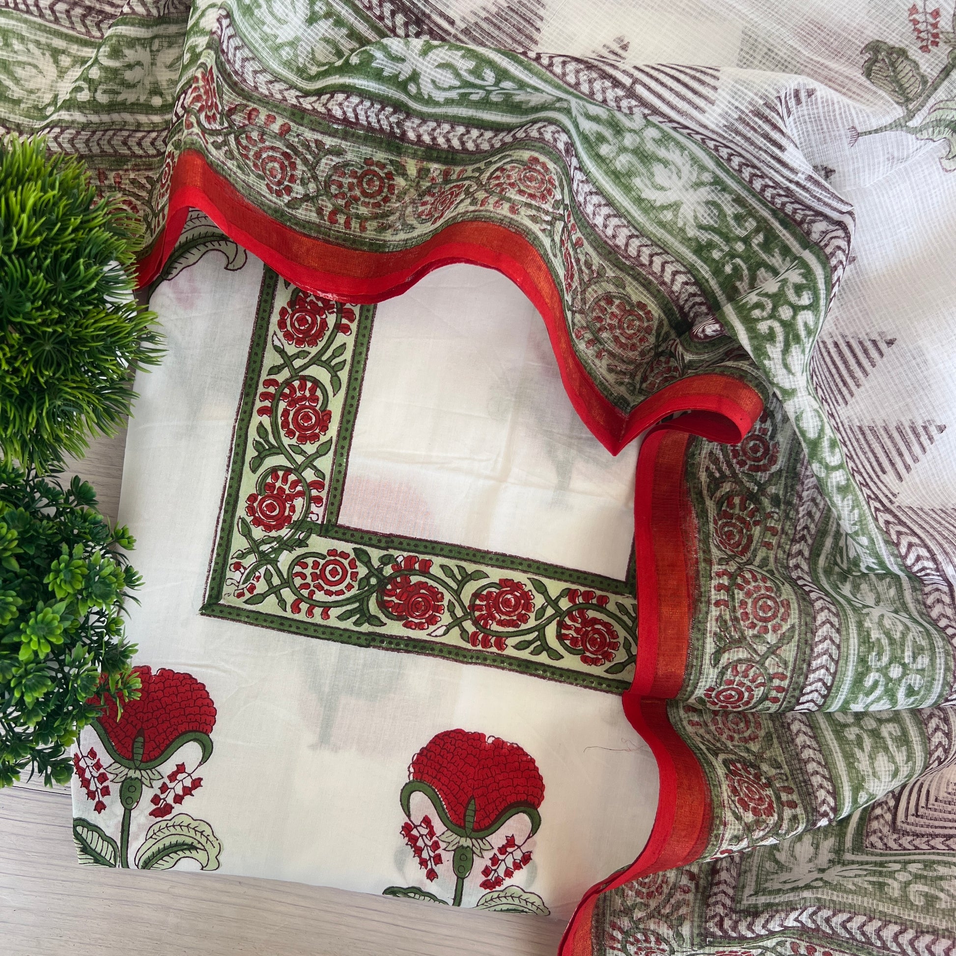 Dupatta - Kota Doriya Block Print Dupatta (2.5Mtr)
