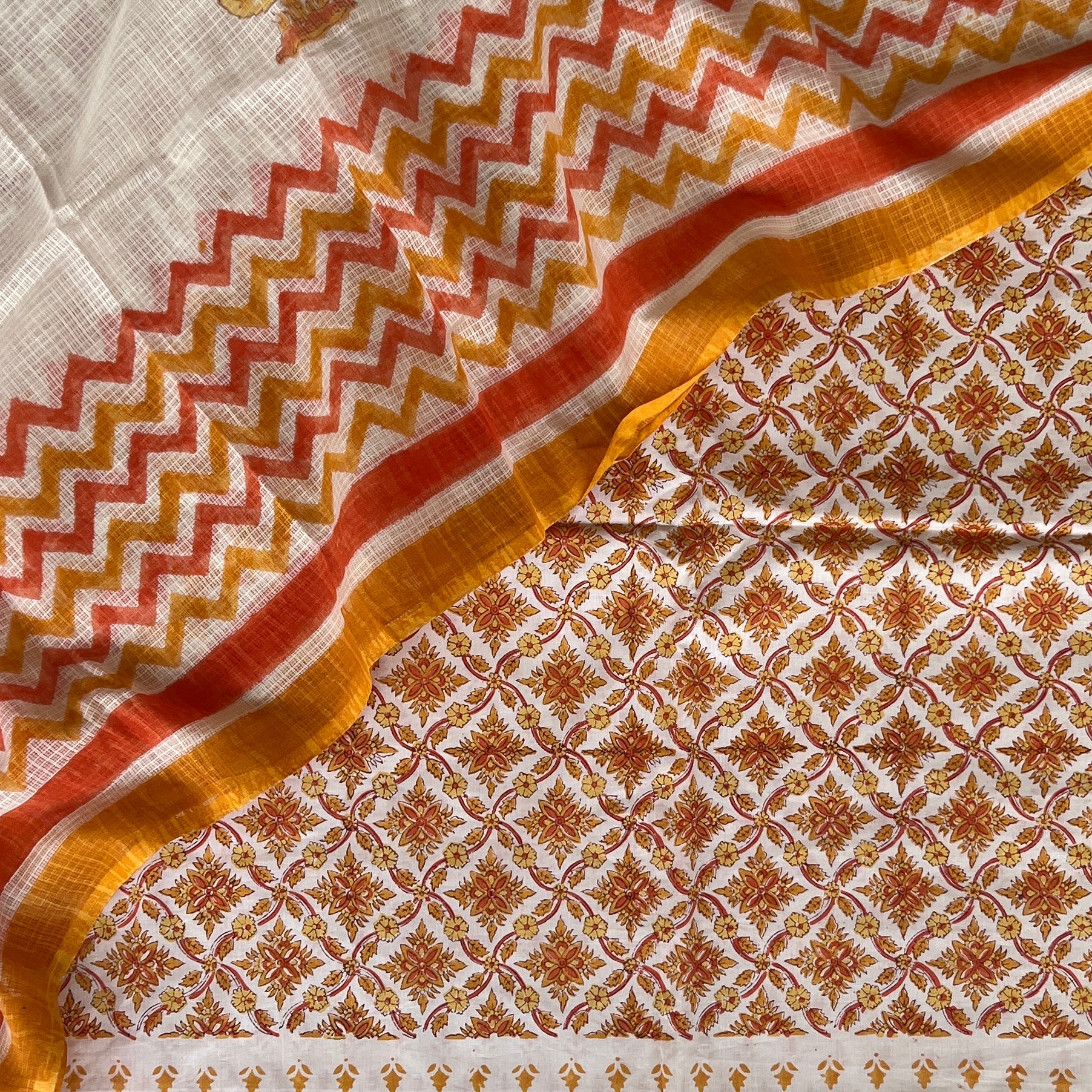 Dupatta - Pure Kota Doriya Block Print Dupatta (2.5Mtr)