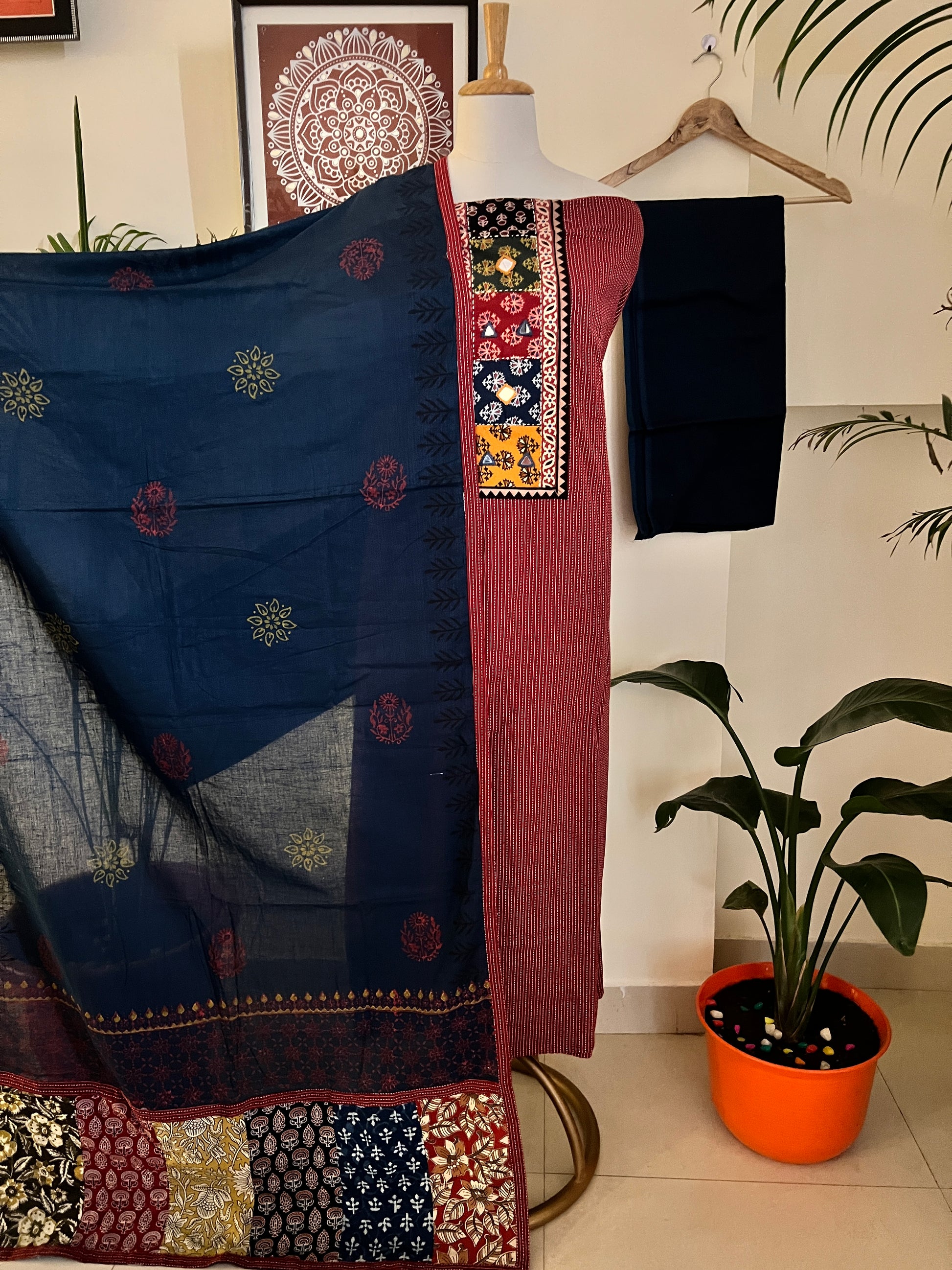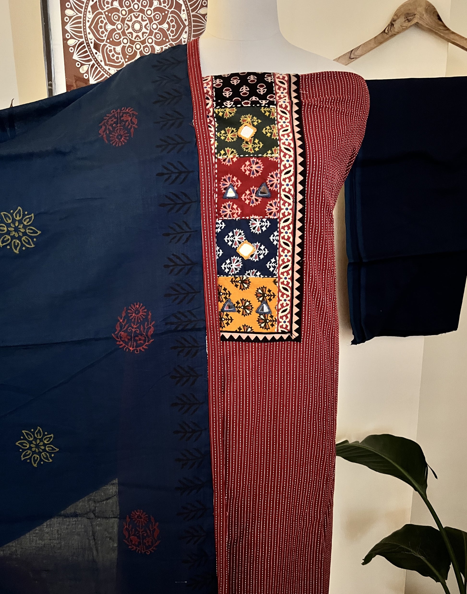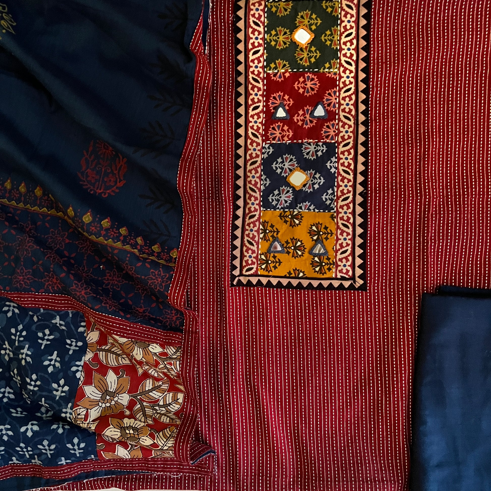 Kurta - Pure Cotton Kantha Work Kurta With Mirror Work (2.5Mtr)