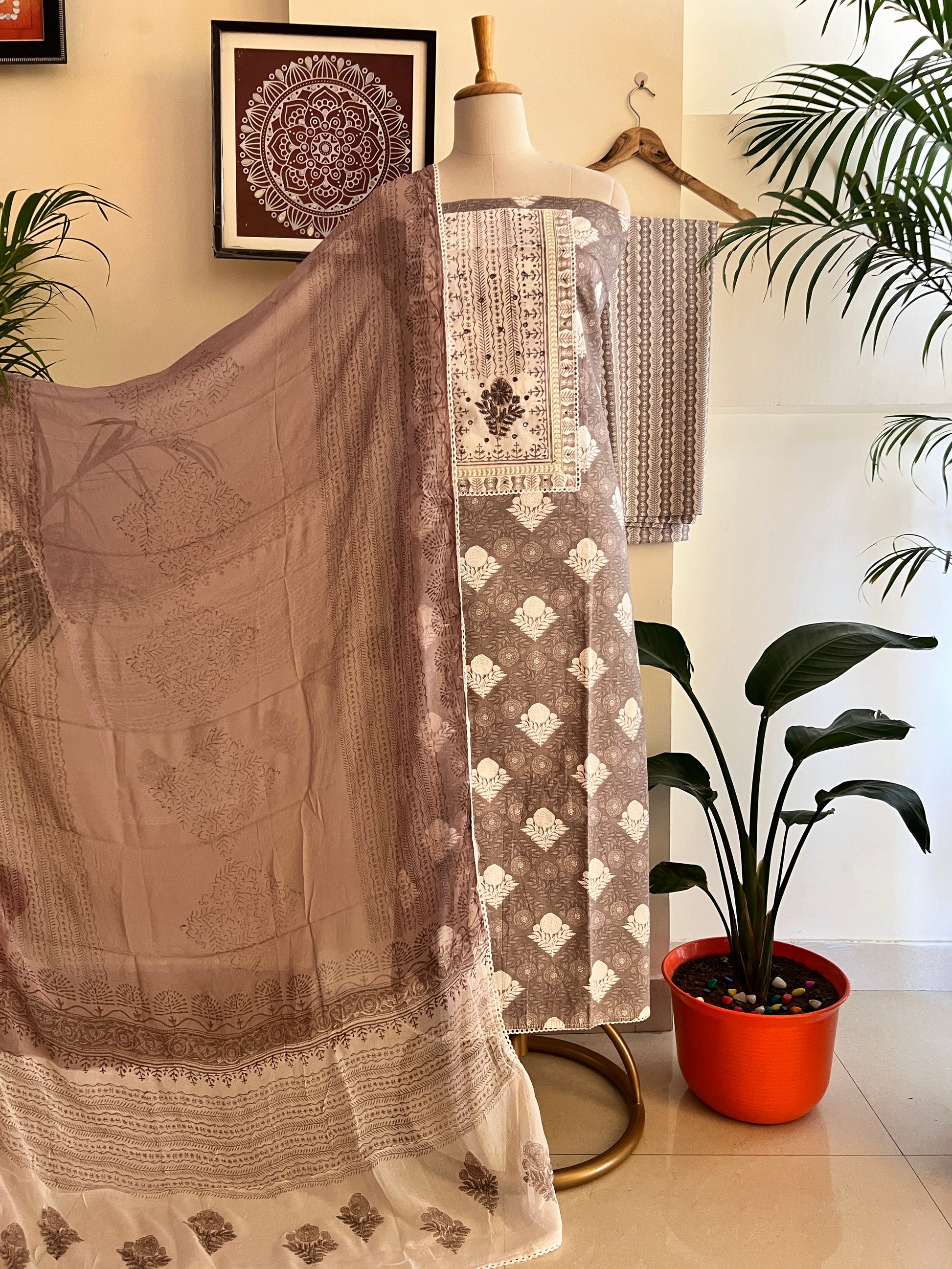 Kurta - Pure Cotton Block Print Kurta With Fine Handwork (2.5Mtr)