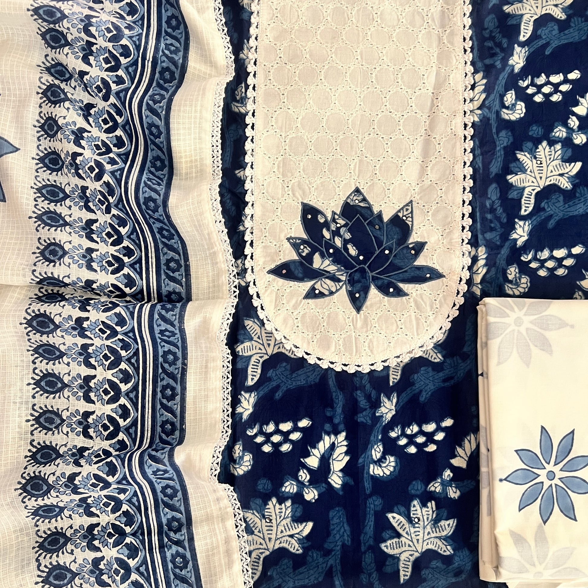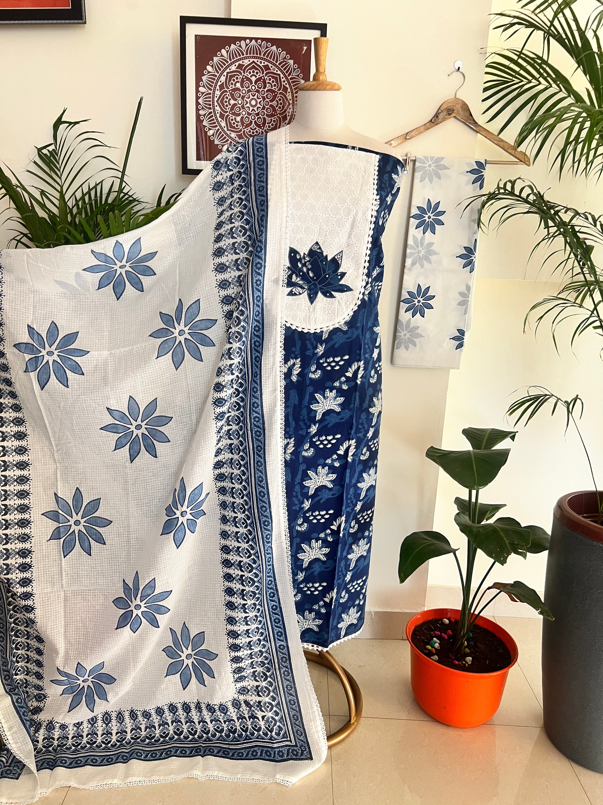 Kurta - Pure Cotton Block Print Kurta With Fine Patch Work At neck (2.5Mtr)