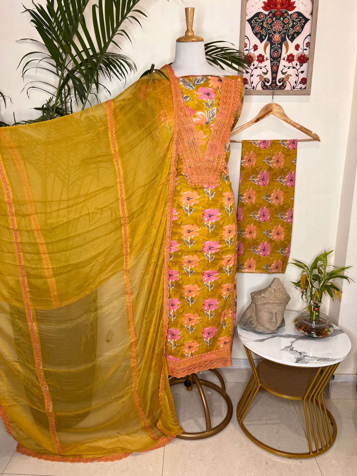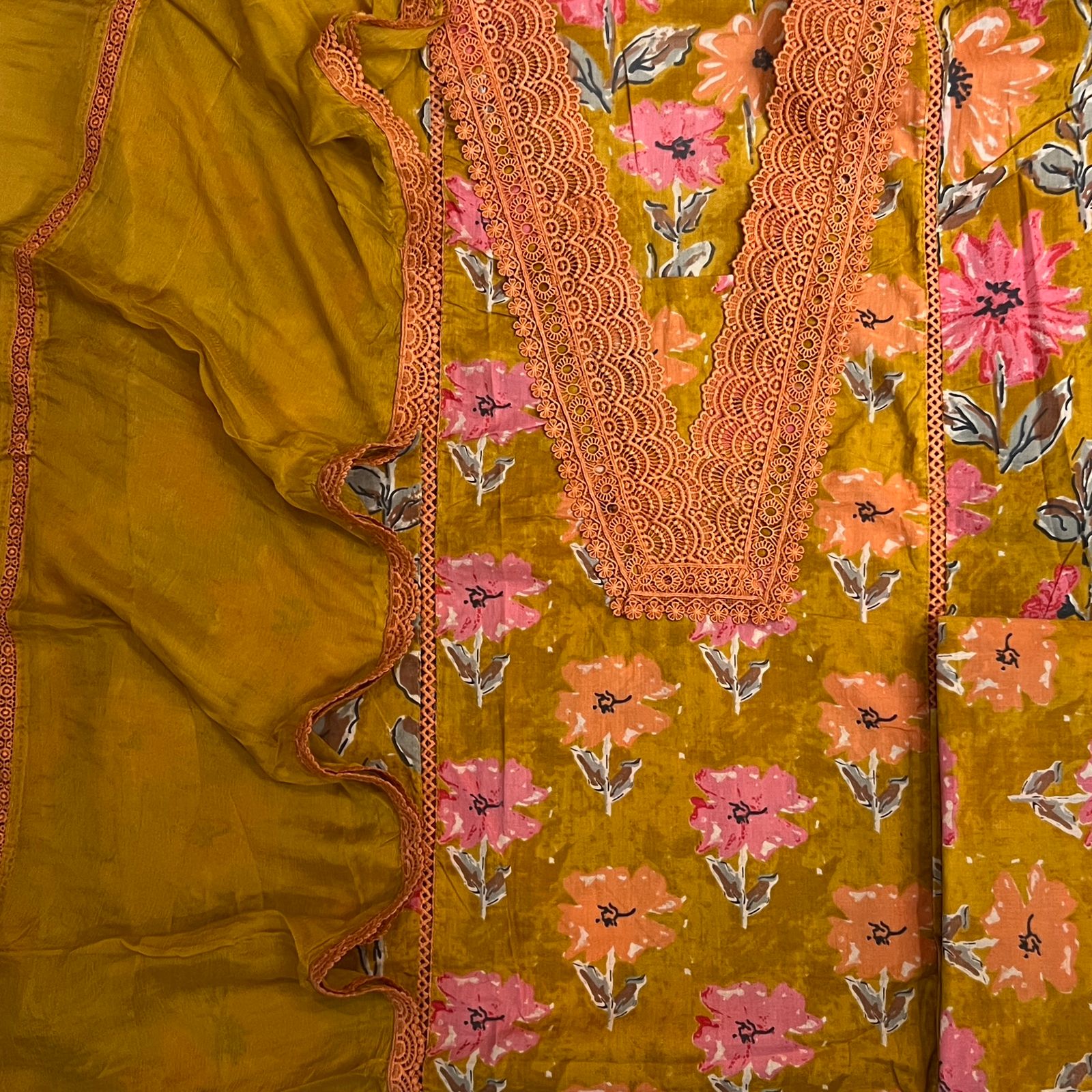 🌸 Dupatta: Pure Chiffon Digital Print Dupatta with lace detailing (2.5 Mtr)