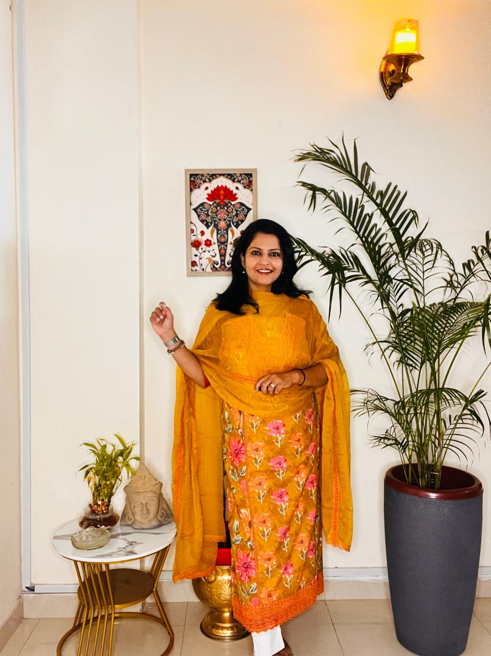 Kurta: Pure Cotton Digital Print Kurta featuring elegant lace work at the neck — soft, stylish, and perfect for a graceful everyday look.