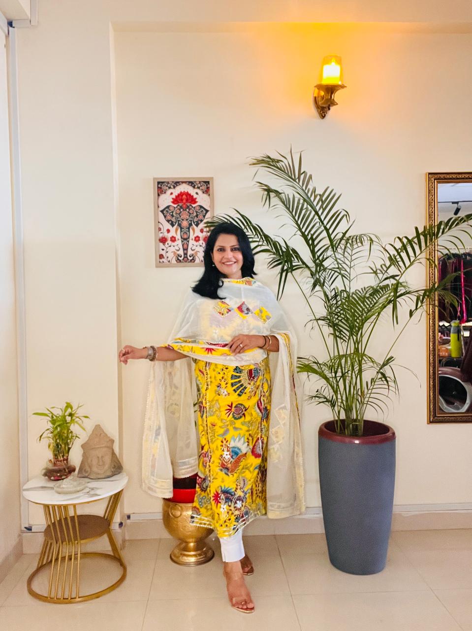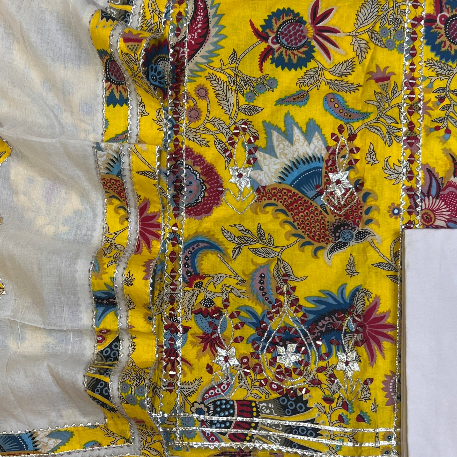 Kurta - Pure Cotton Digital Print Gota Work Kurta With Fine Mirror Work (2.5Mtr)