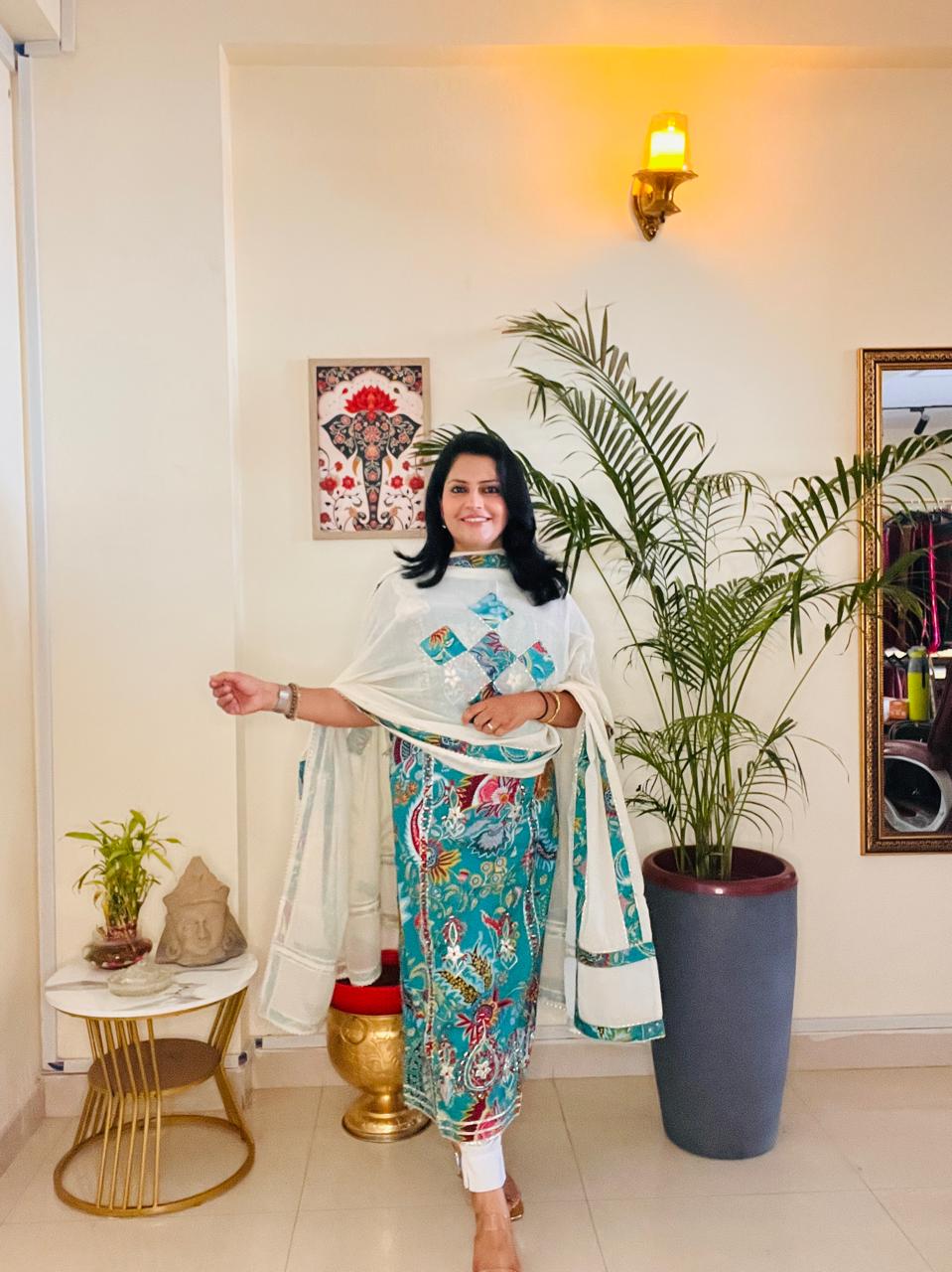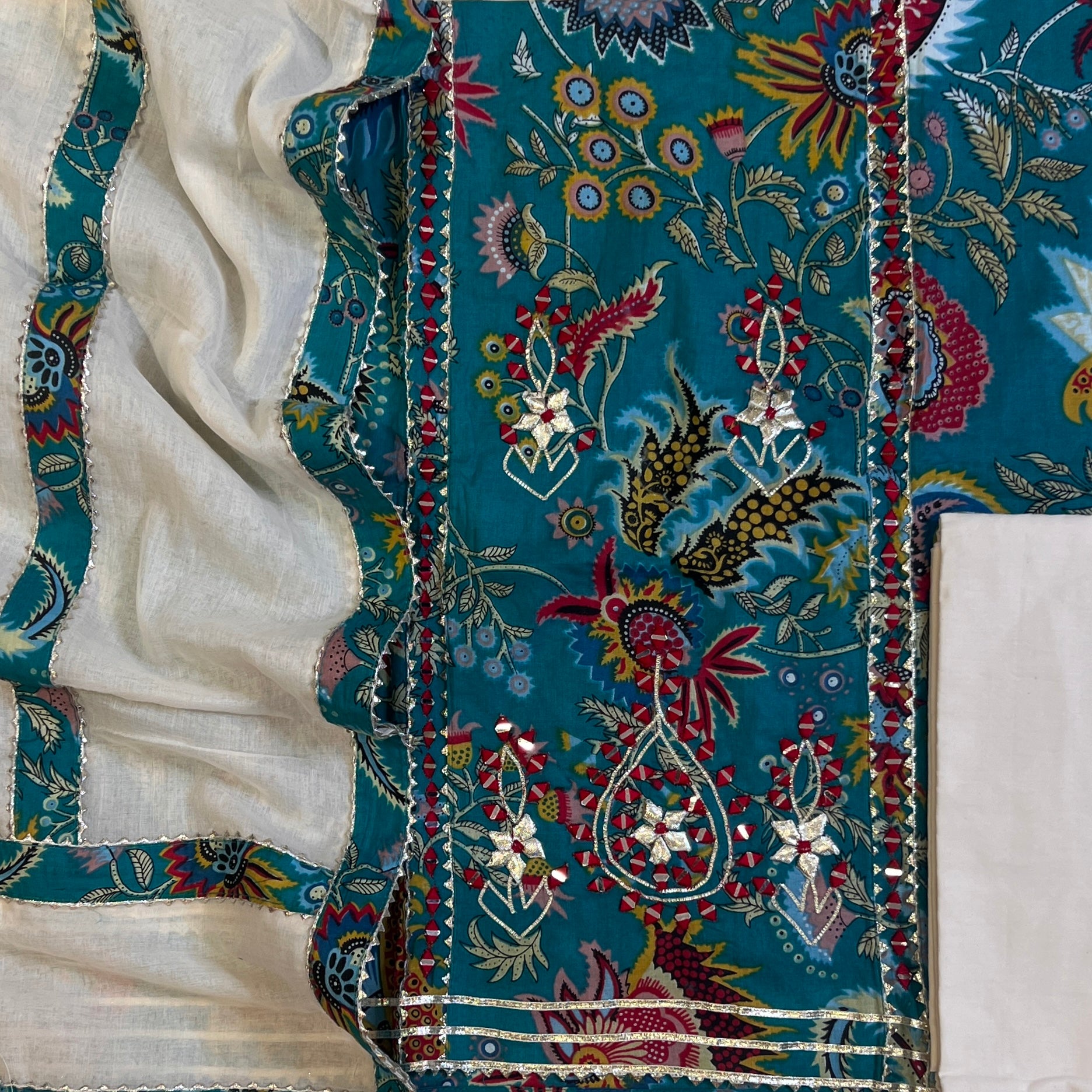 Kurta - Pure Cotton Digital Print Gota Work Kurta With Fine Mirror Work (2.5Mtr)