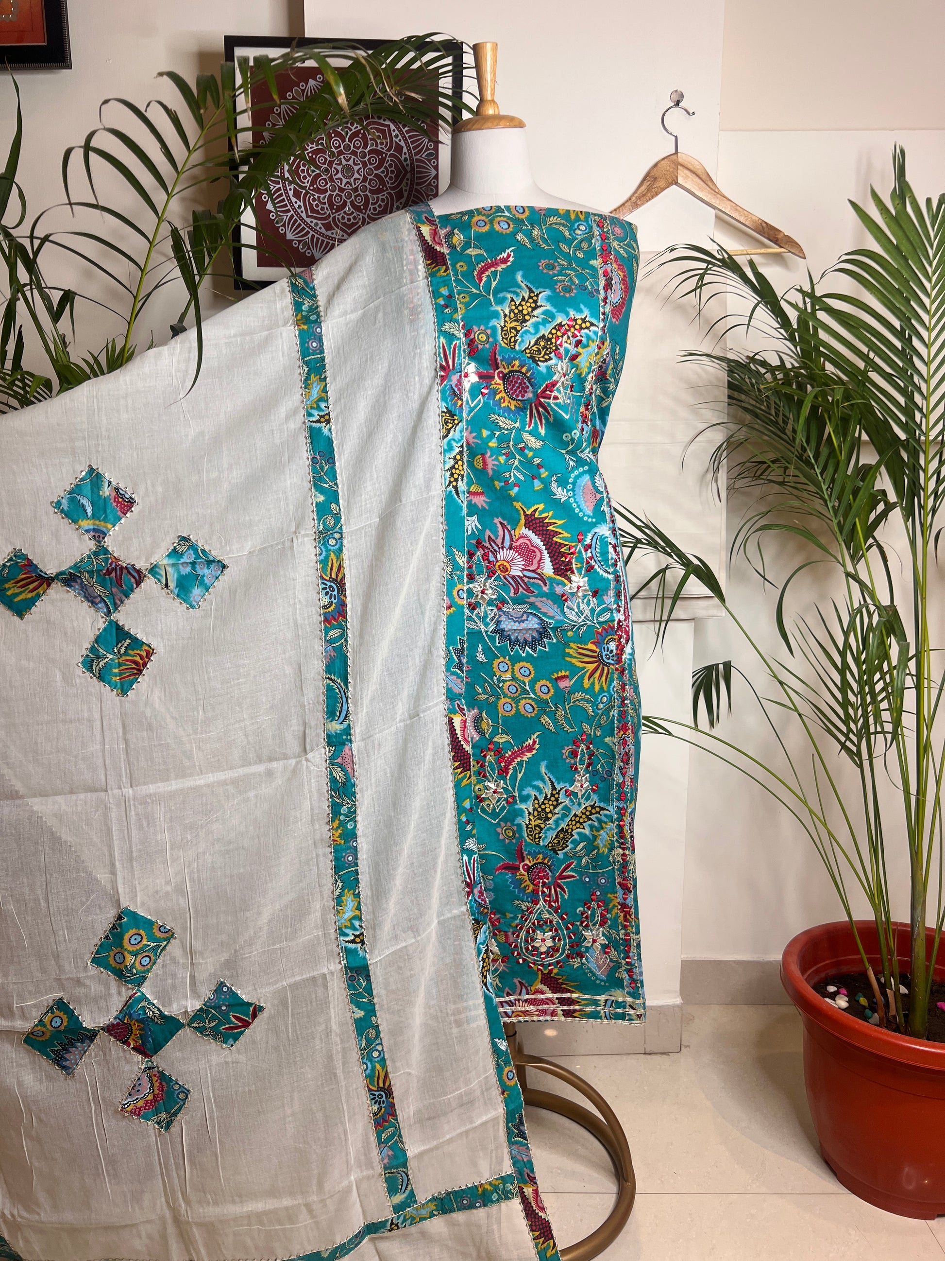Dupatta - Pure Cotton Applique Work With Gota Work (2.5Mtr)