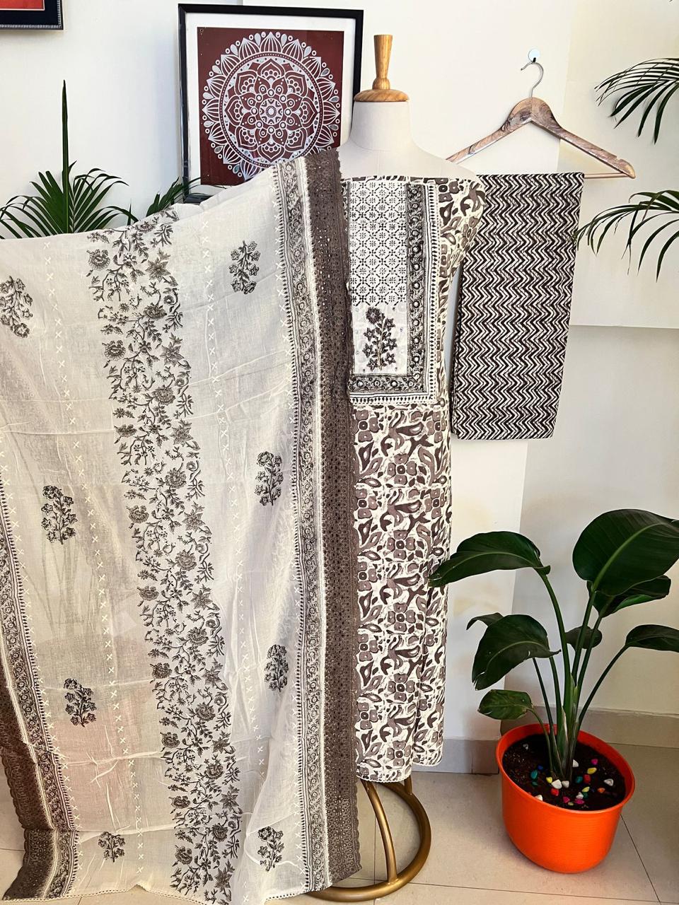 Kurta - Pure Cotton Handwork Block Print Kurta With Crochet Border (2.5Mtr)