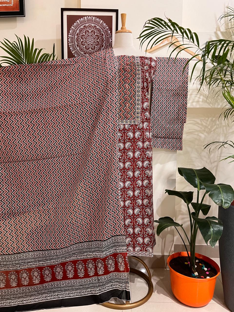Experience effortless elegance with this Pure Cotton Block Print Suit Set:
