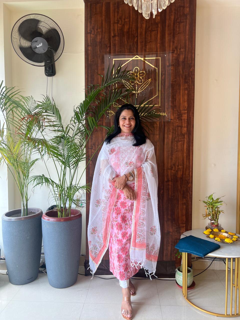 Add a touch of handcrafted charm to your wardrobe with this Pure Cotton Block Print Kurta, featuring elegant Kantha work at the neck. Soft, breathable, and effortlessly stylish — perfect for everyday grace.