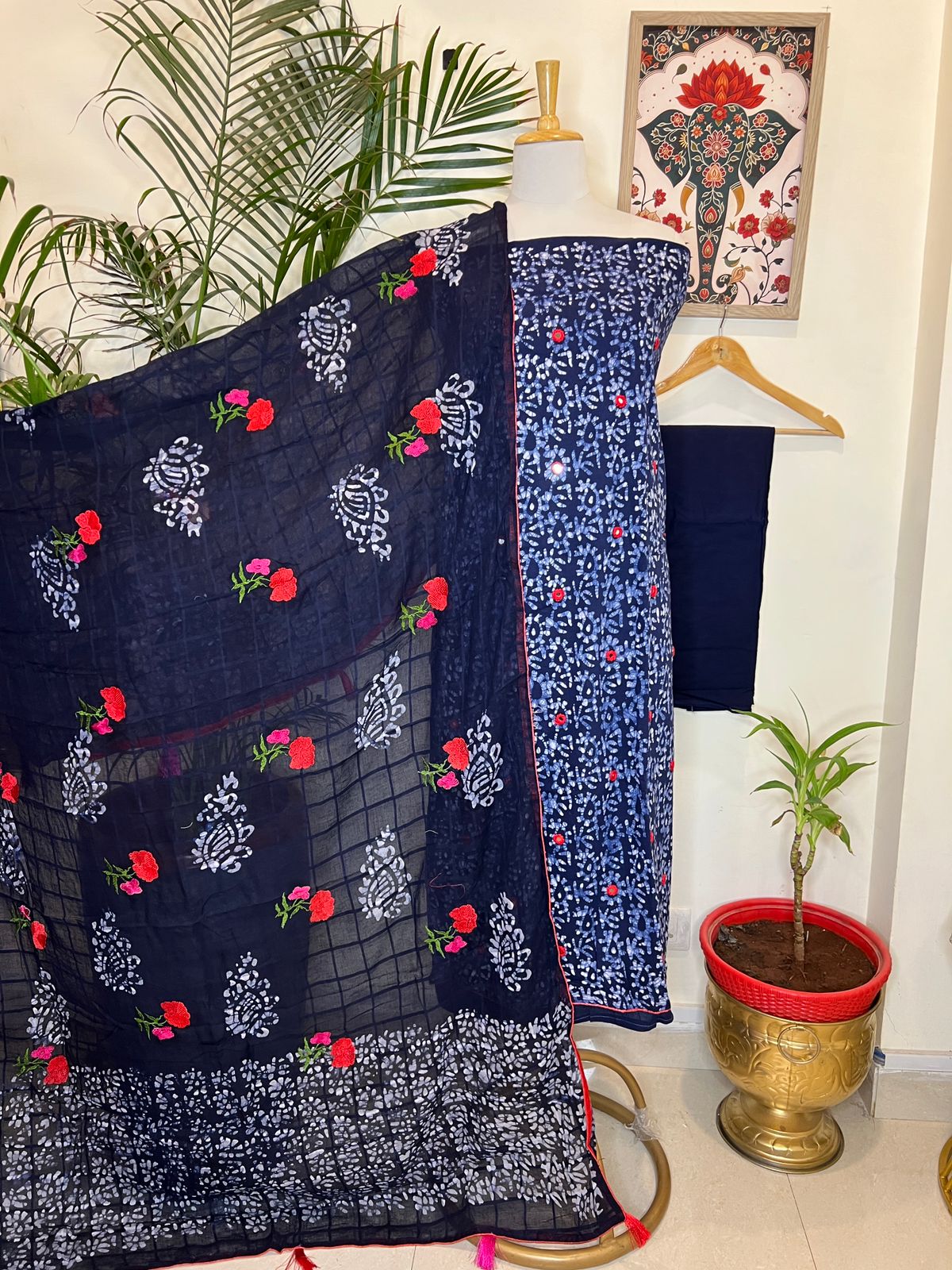 ๐ Kurta: Handcrafted Batik with Mirror Work (2.5 Mtr)