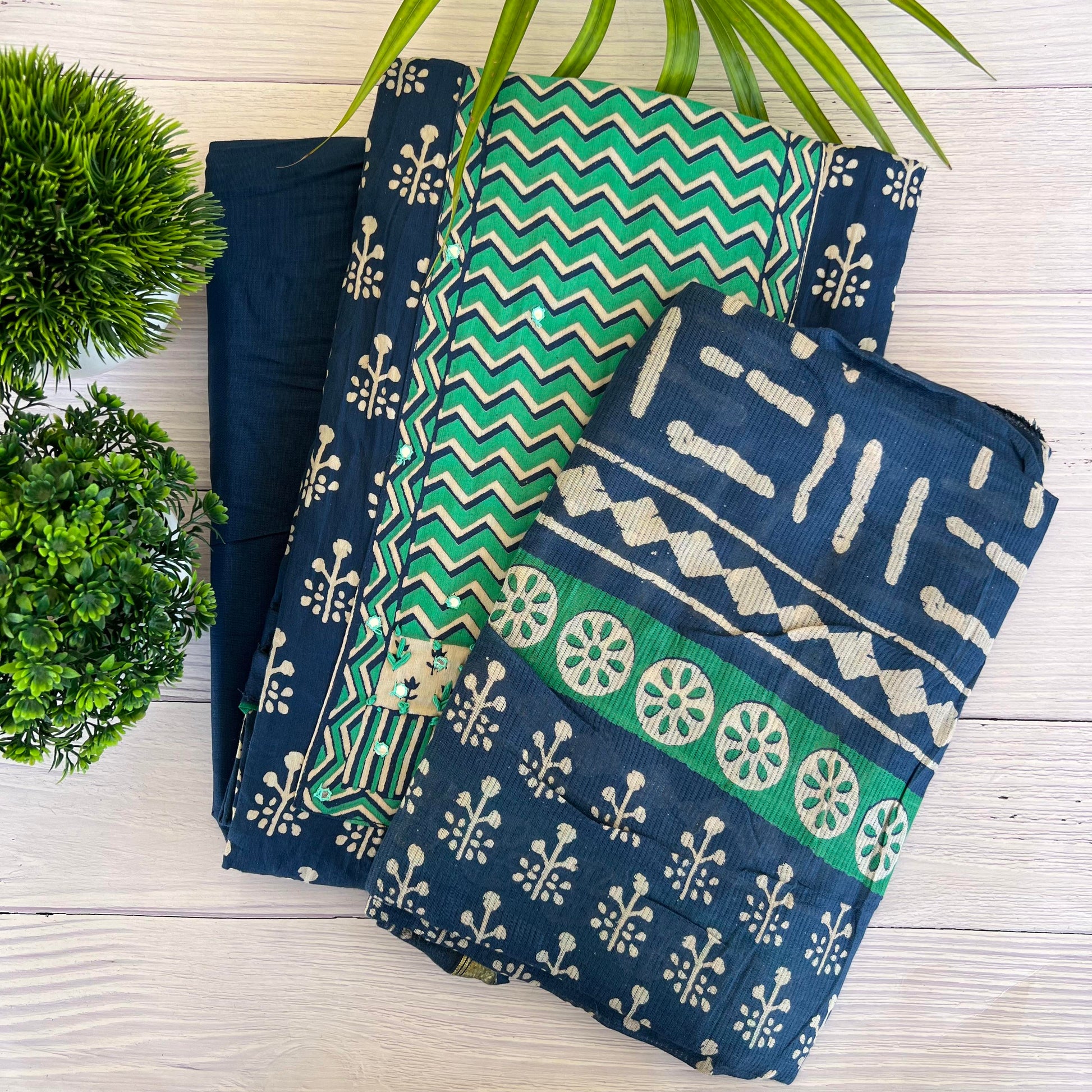 Kurta - Pure Cotton Block Print  Handwork Kurta (2.5Mtr)