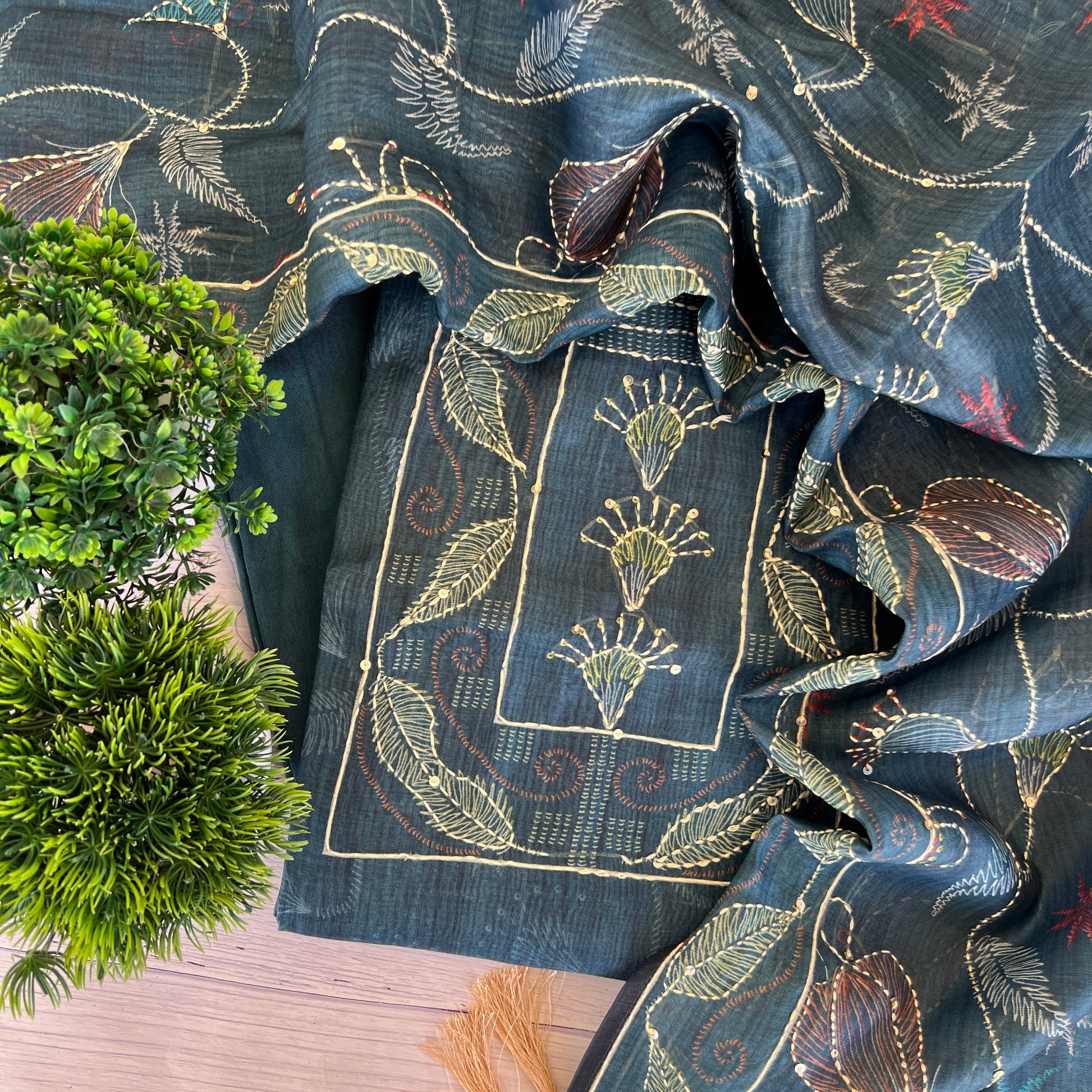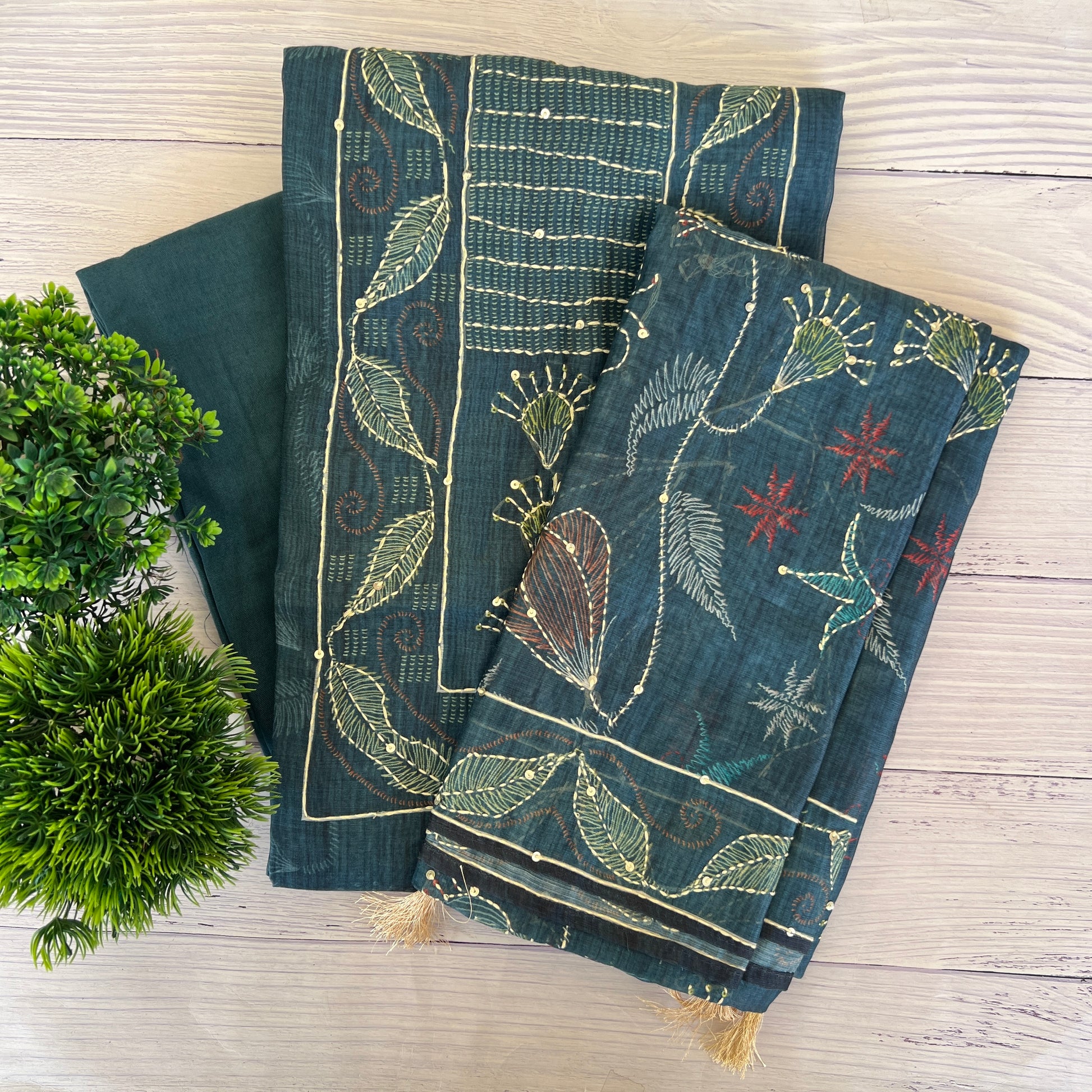 Kurta - Cotton Silk Kalamkari Print Kantha Work Kurta (2.5mtr)