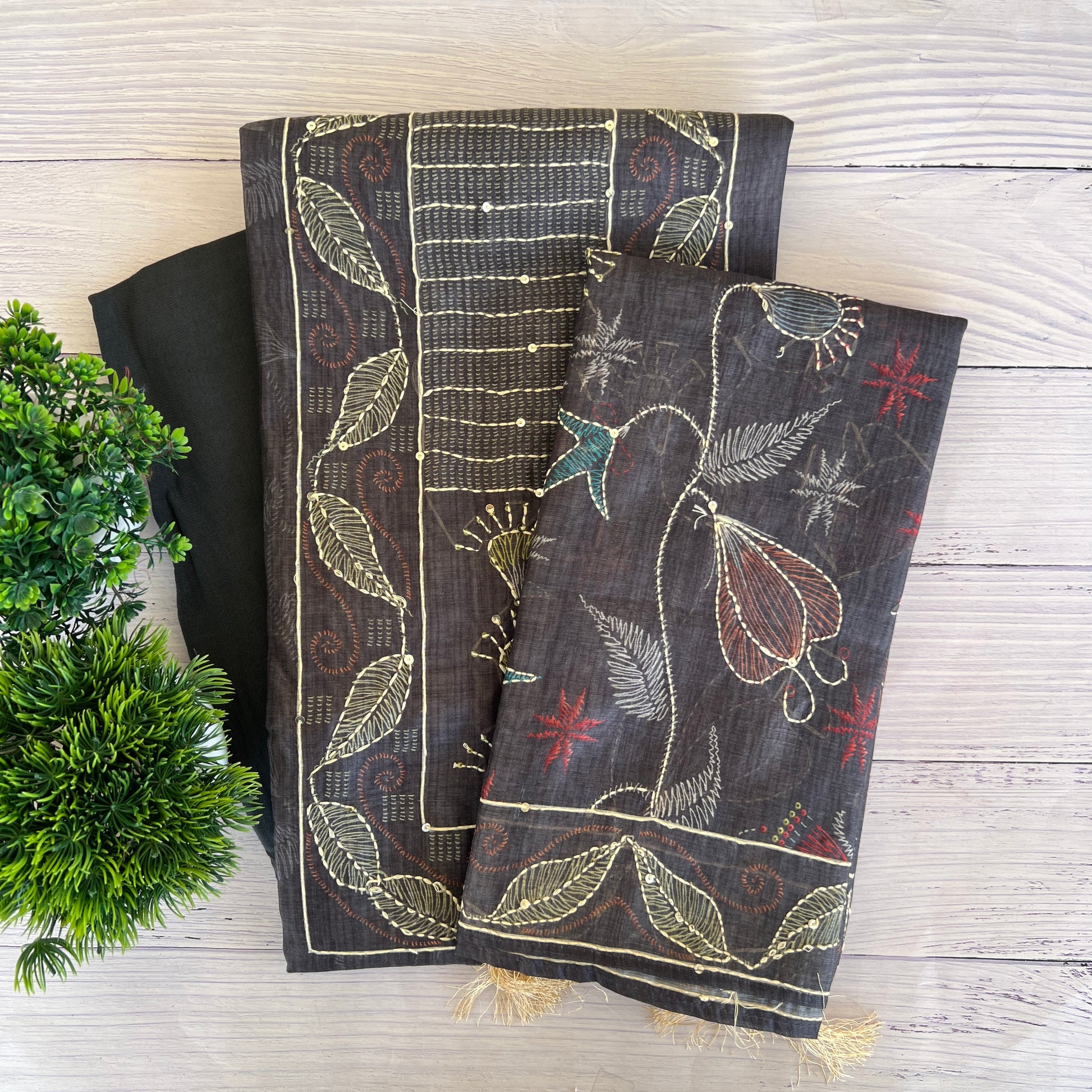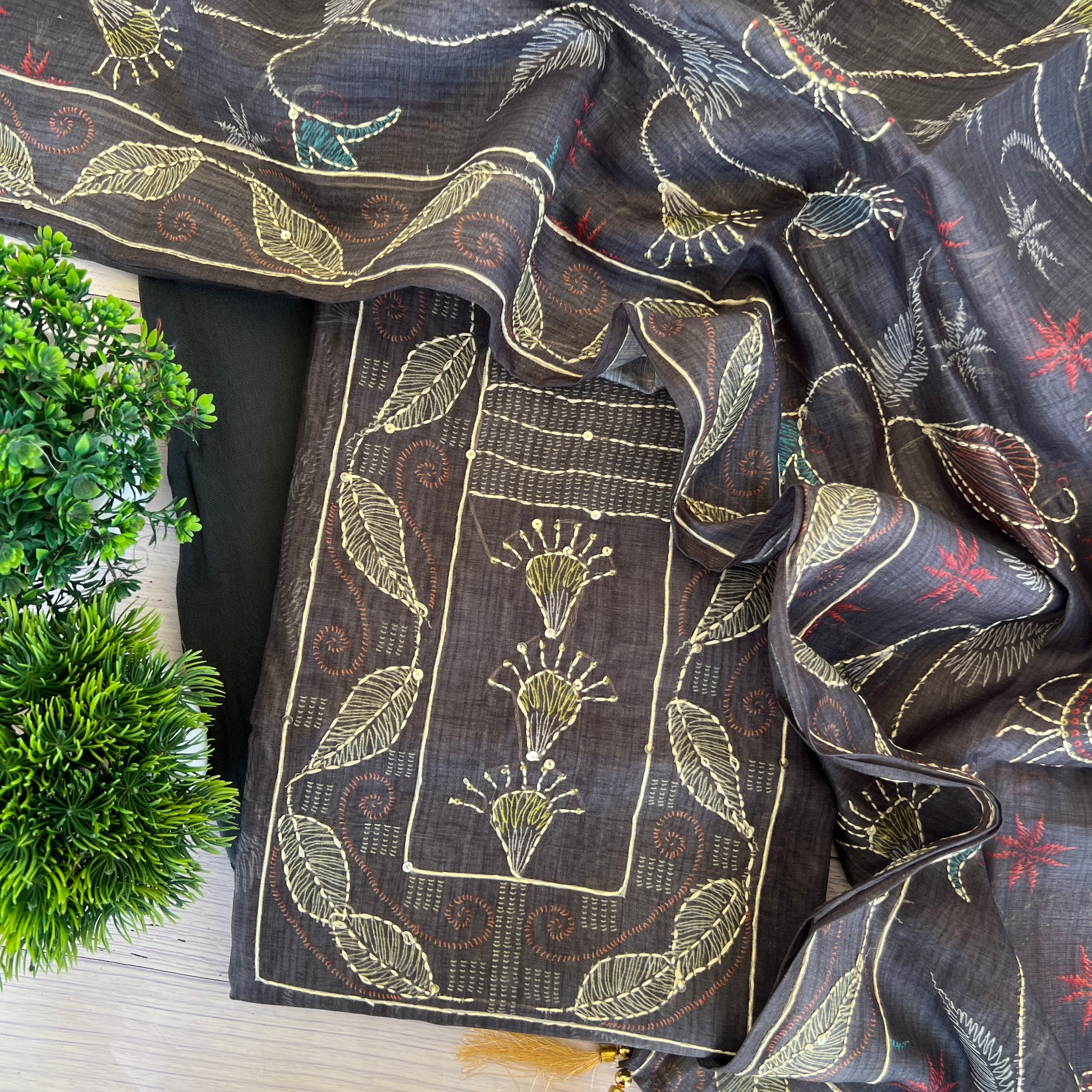 Kurta - Cotton Silk Kalamkari Print Kantha Work Kurta (2.5mtr)