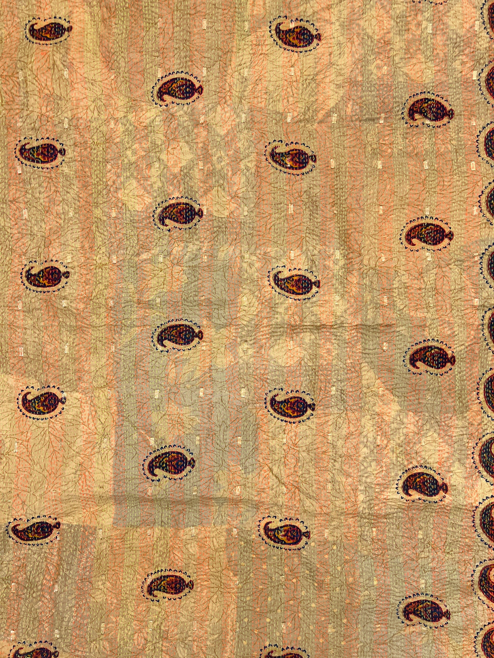 A Cotton Silk Dupatta with Kantha Work blends comfort and elegance. The soft cotton silk fabric is complemented by intricate hand-stitched Kantha embroidery, featuring nature-inspired motifs. This versatile accessory adds a traditional yet contemporary touch, perfect for festive occasions, casual wear, or cultural events.