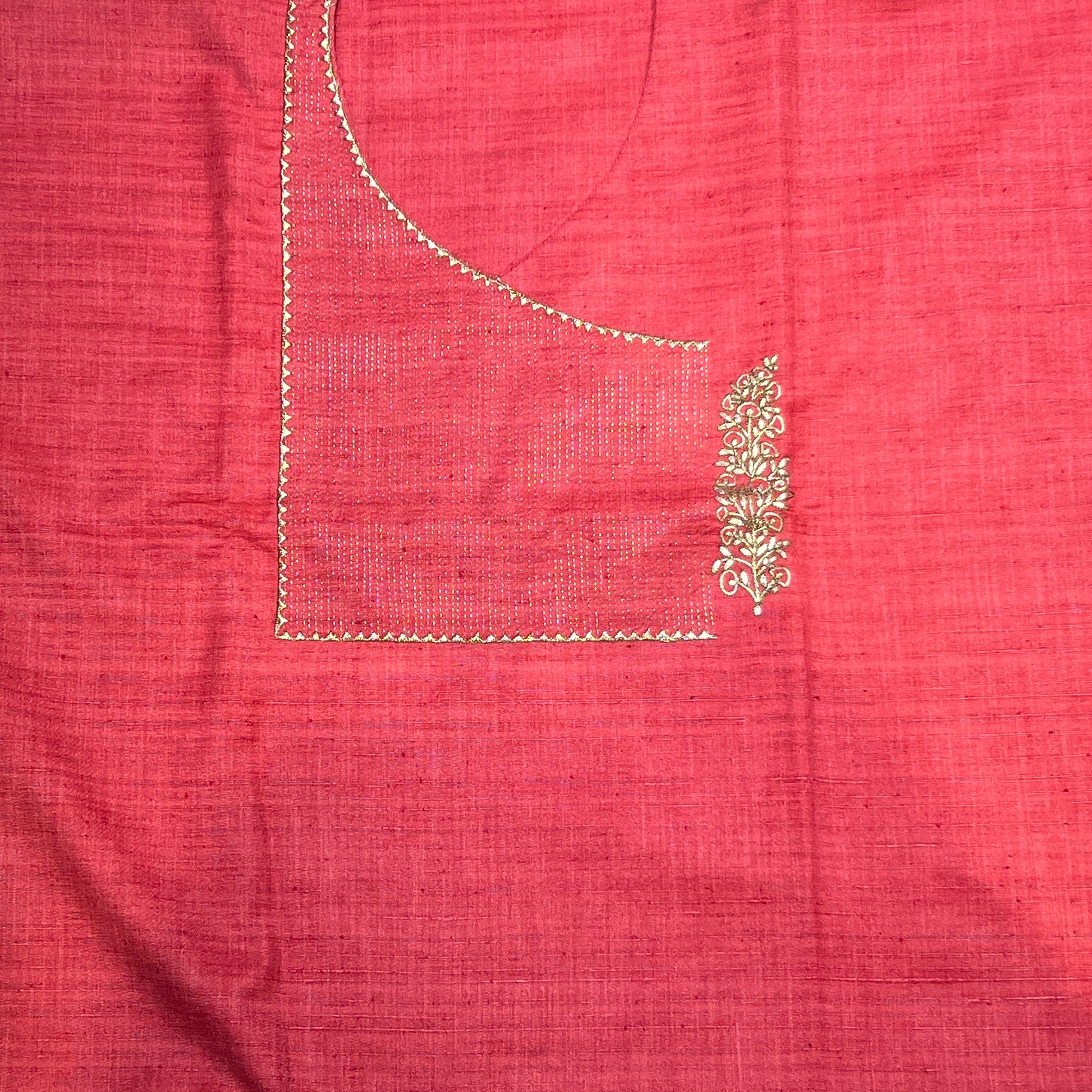Elevate your ethnic style with this Fine Cotton Silk Giccha Fabric Kurta featuring exquisite Aari work and hand embroidery on the neckline and sleeves. Crafted with intricate detailing and elegant embroidery, this 2.5-meter fabric is perfect for creating a timeless and graceful look. ✨