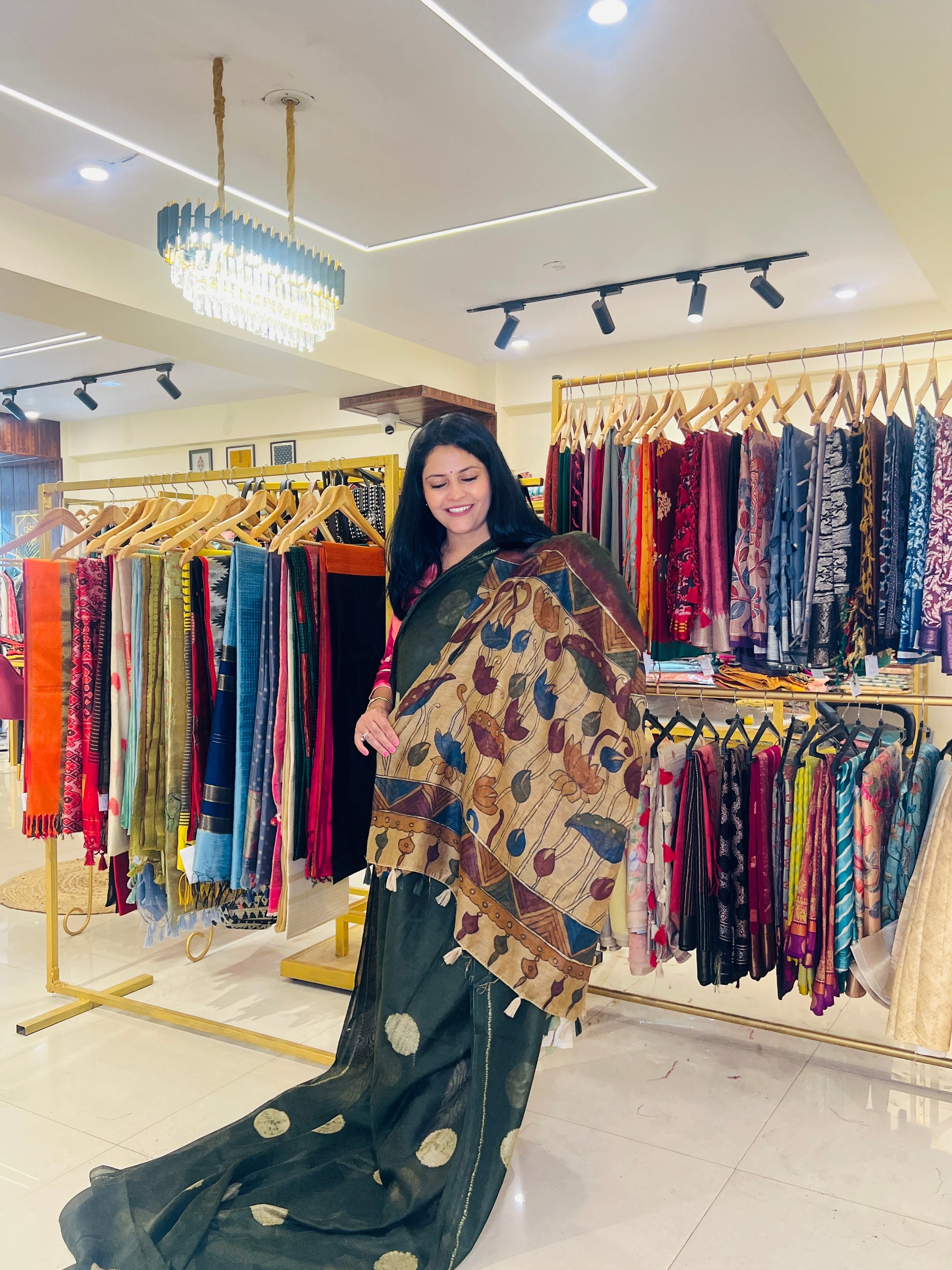 Where tradition meets artistry β discover an exclusive curation of Shibori & Kalamkari sarees.