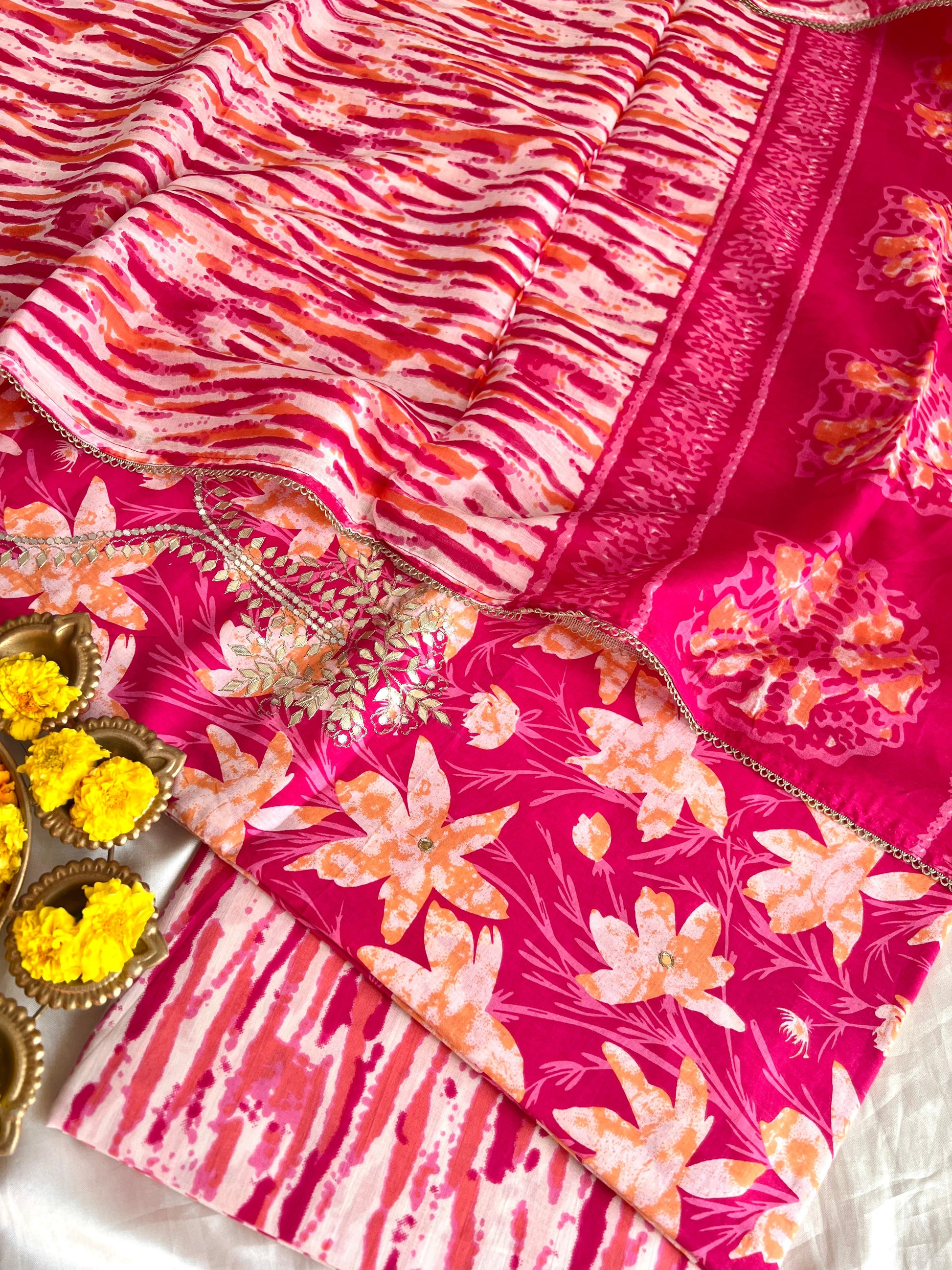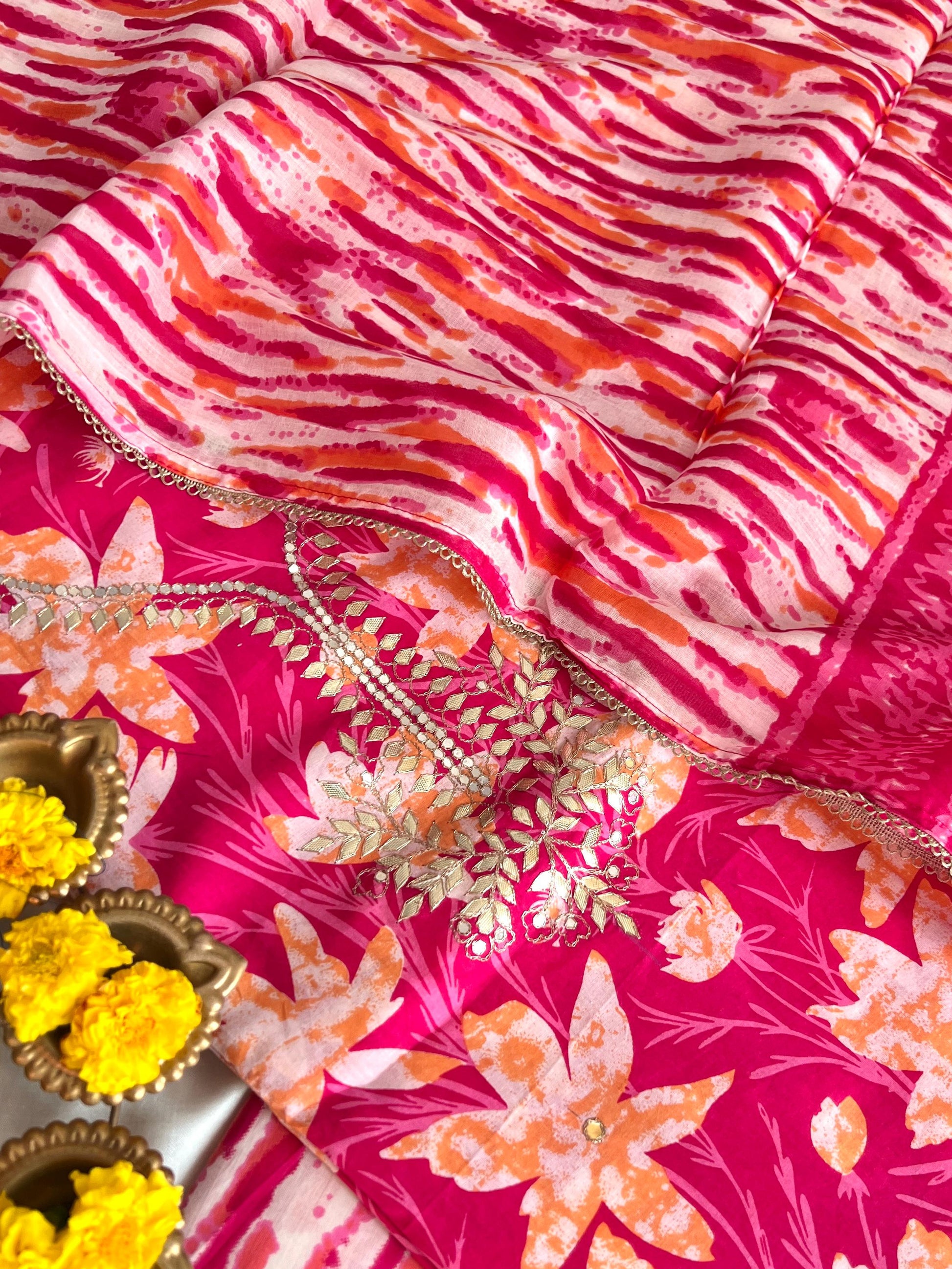 Kurta - Pure Cotton Kalamkari Print Kurta With Fine Gota Handwork Detailing (2.5Mtr)