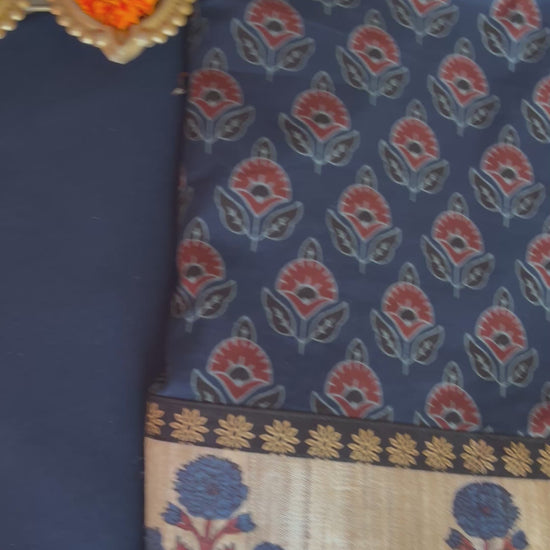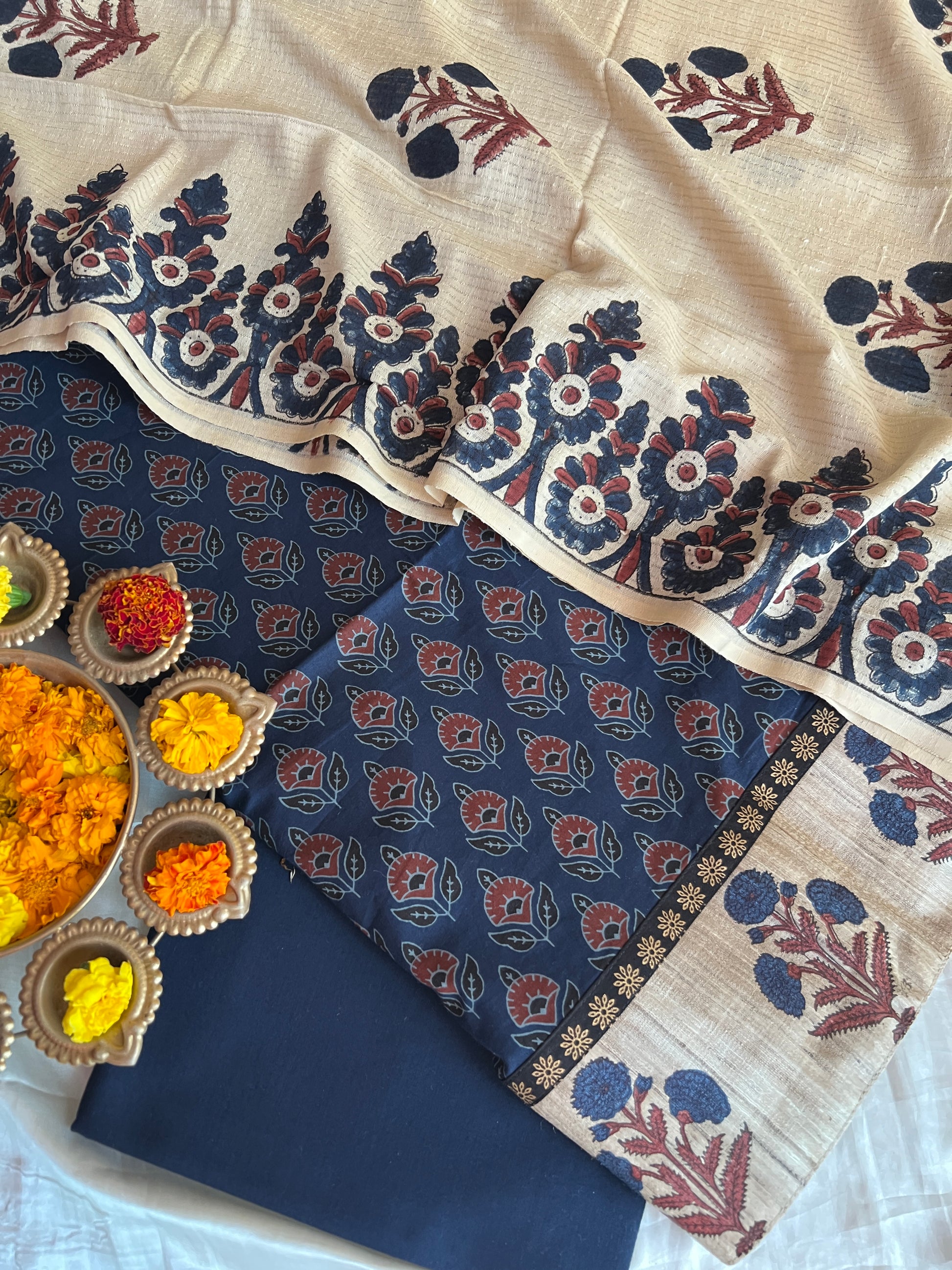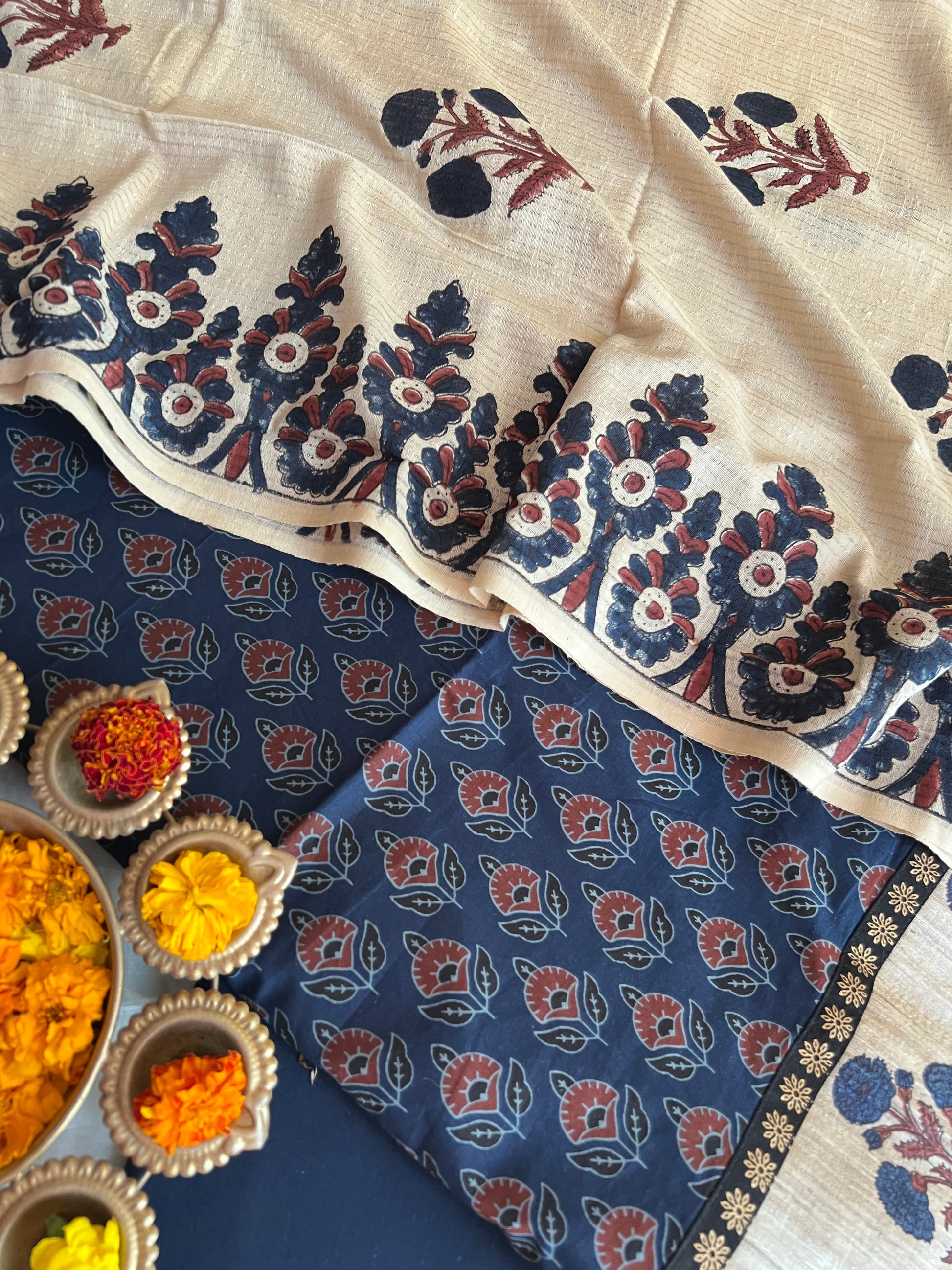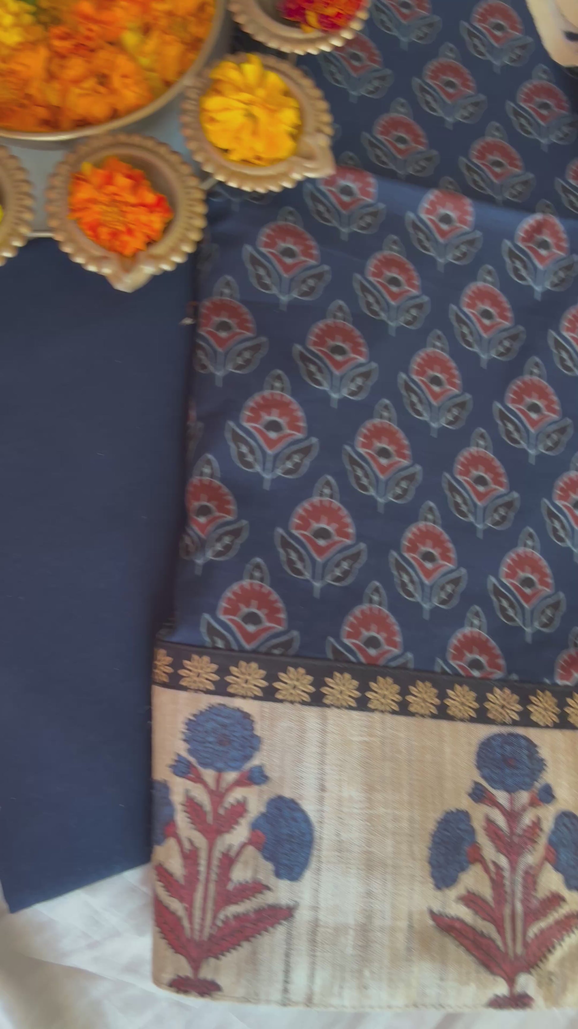 Kurta - Pure Cotton Handblock Kurta With Fine Block Print Ghicha Border At Daman (2.5Mtr)