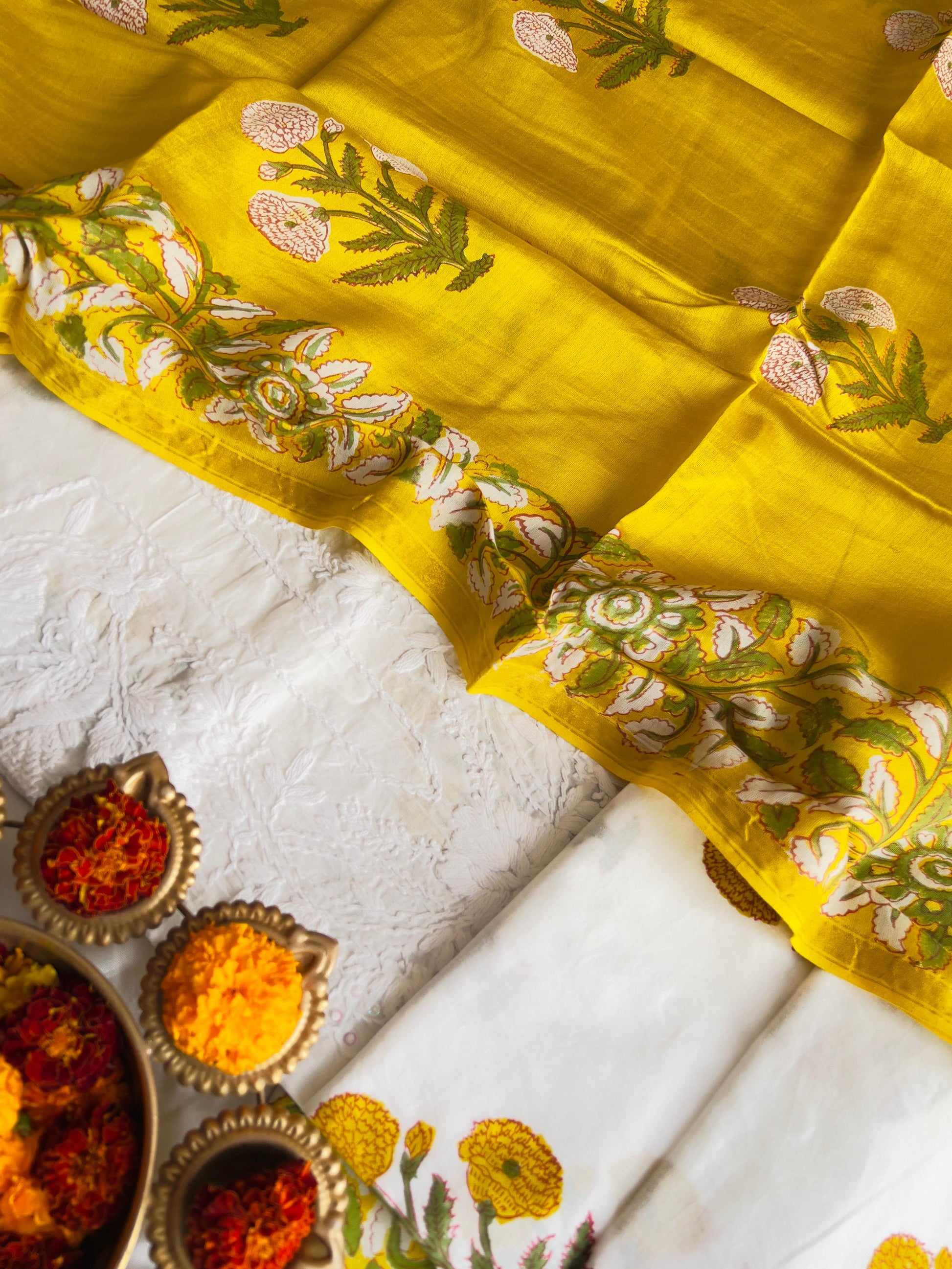 Dupatta - Pure Chanderi Silk Block Print Dupatta (2.5Mtr)