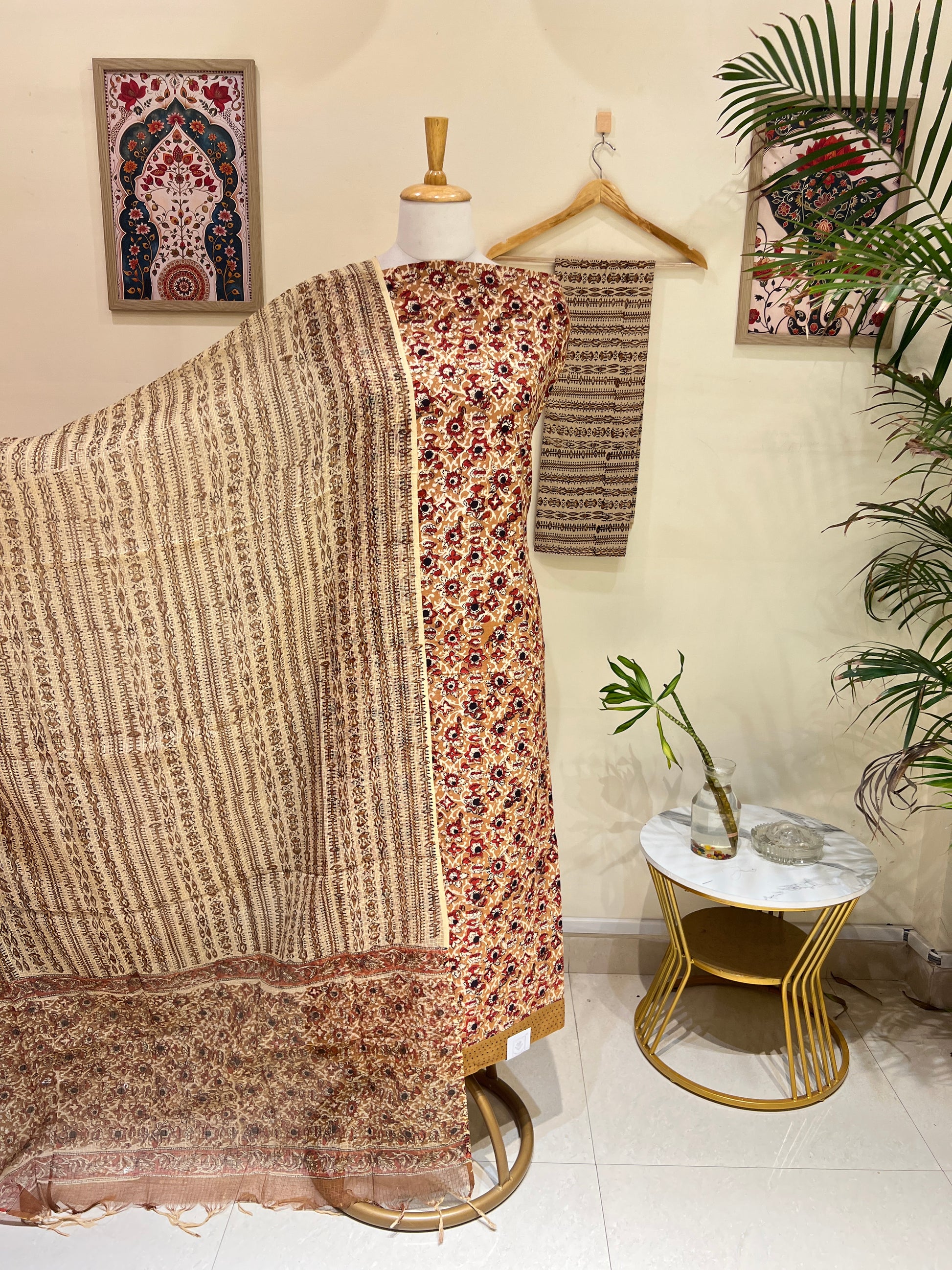 Dupatta - Pure Kota Doriya Kalamkari Block Print Dupatta (2.5Mtr)