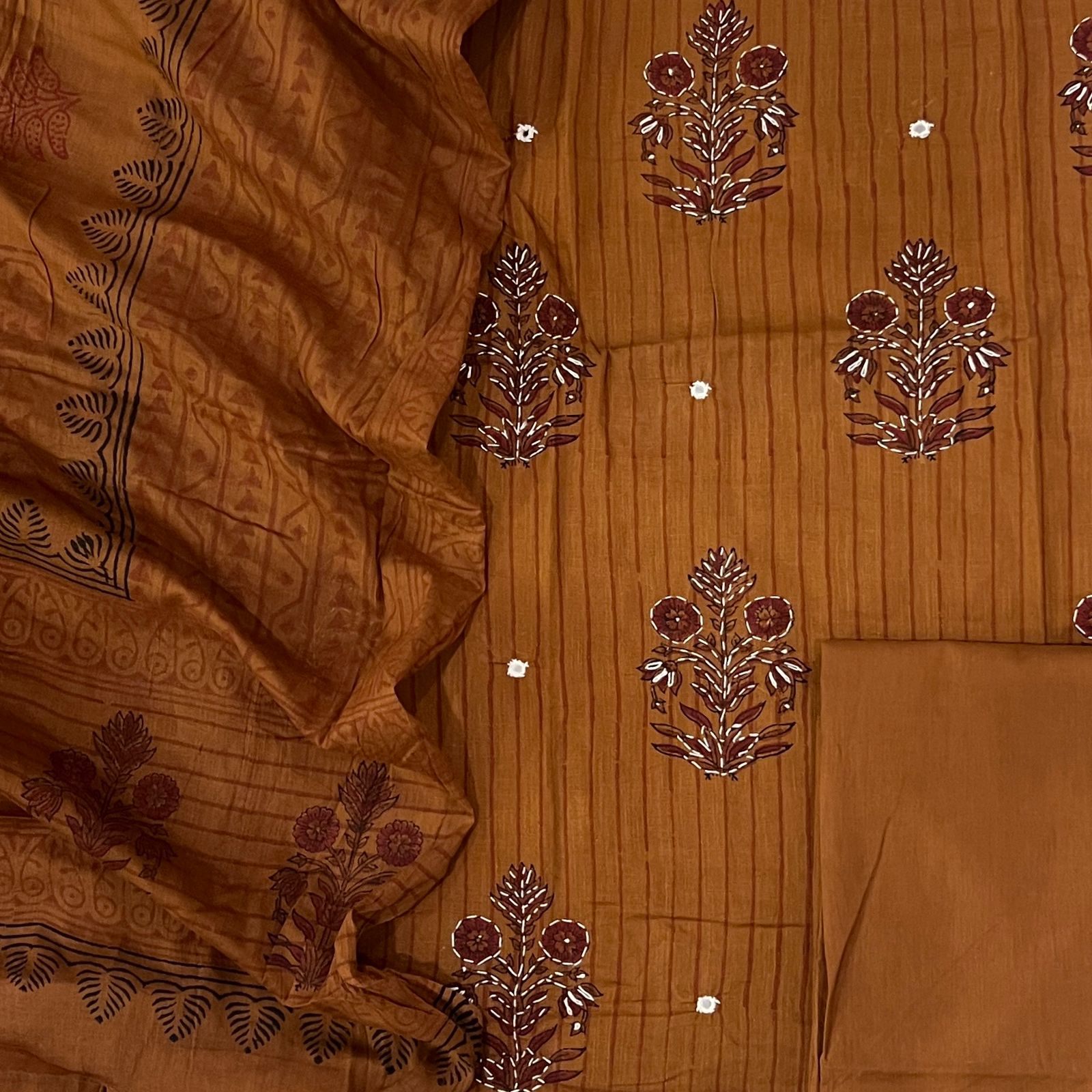 ๐ Kurta โ Pure Cotton Block Print with delicate Kantha Work (2.5 Mtr)