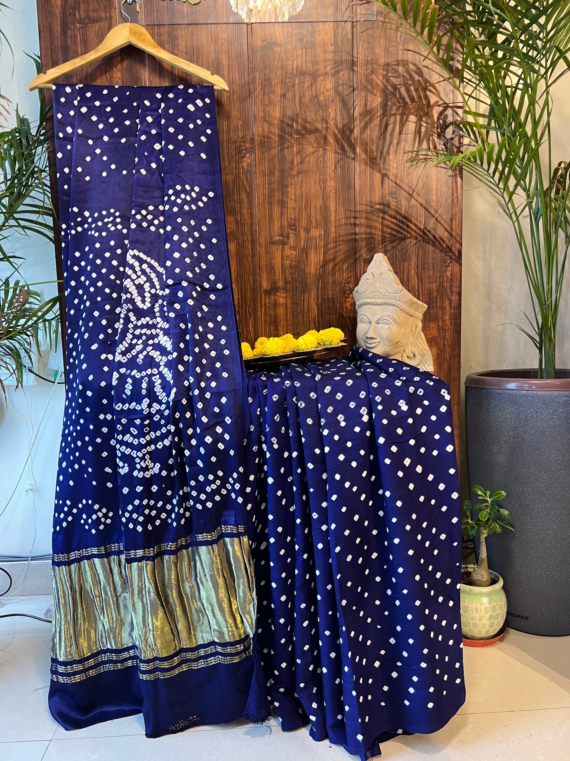 Elevate your style with our Gaji Silk Hand Bandhani Saree with Blouse āØ