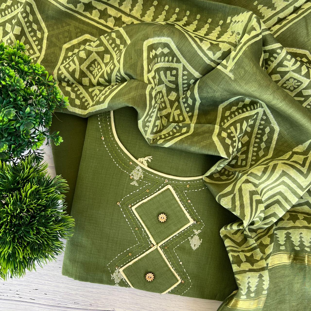 Kurta - Soft Handlooom Cotton Kurta With Kantha Work Embroidery (2.5Mtr)
