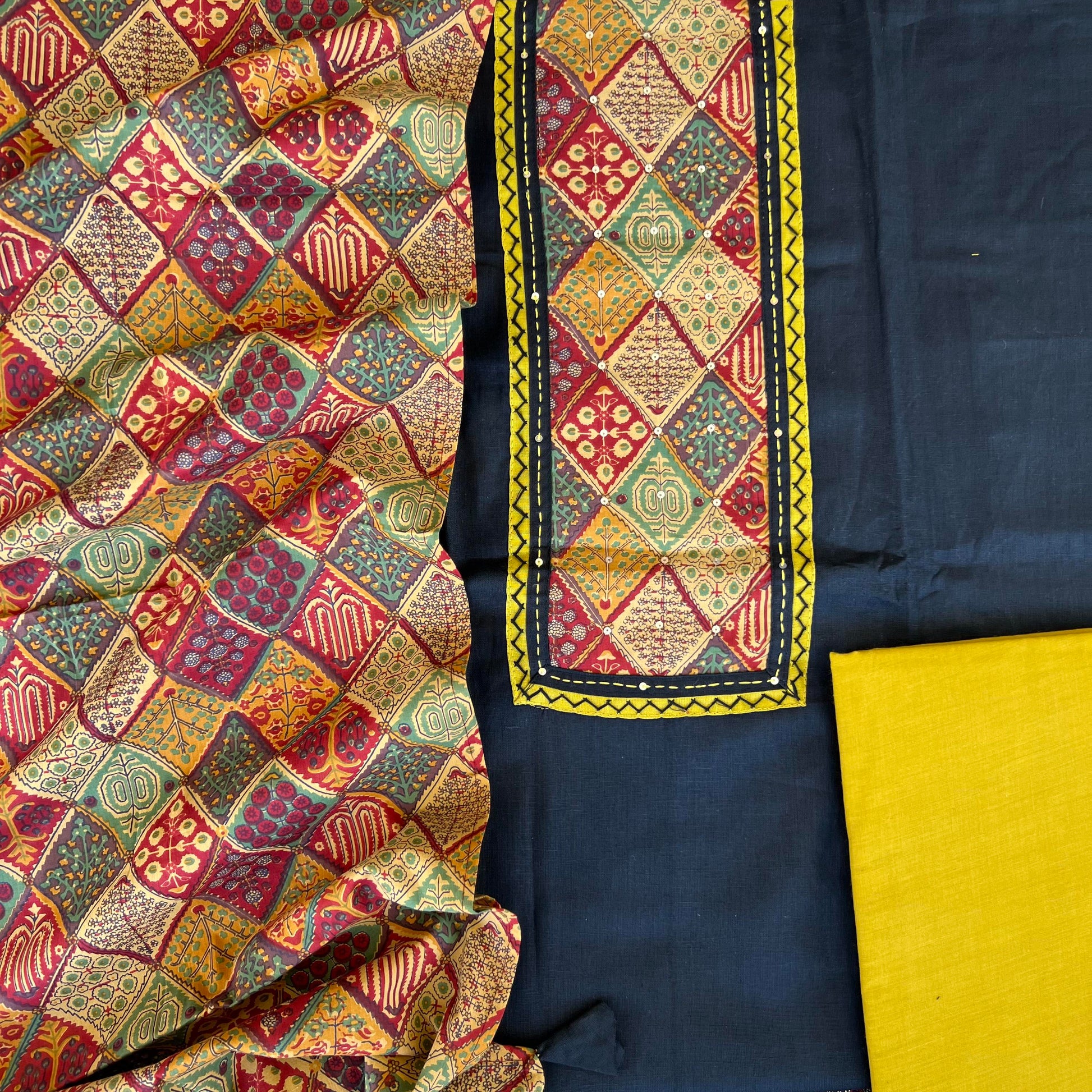 Kurta - Handloom Cotton Patch Work Kurta With Fine Handwork (2.5Mtr)