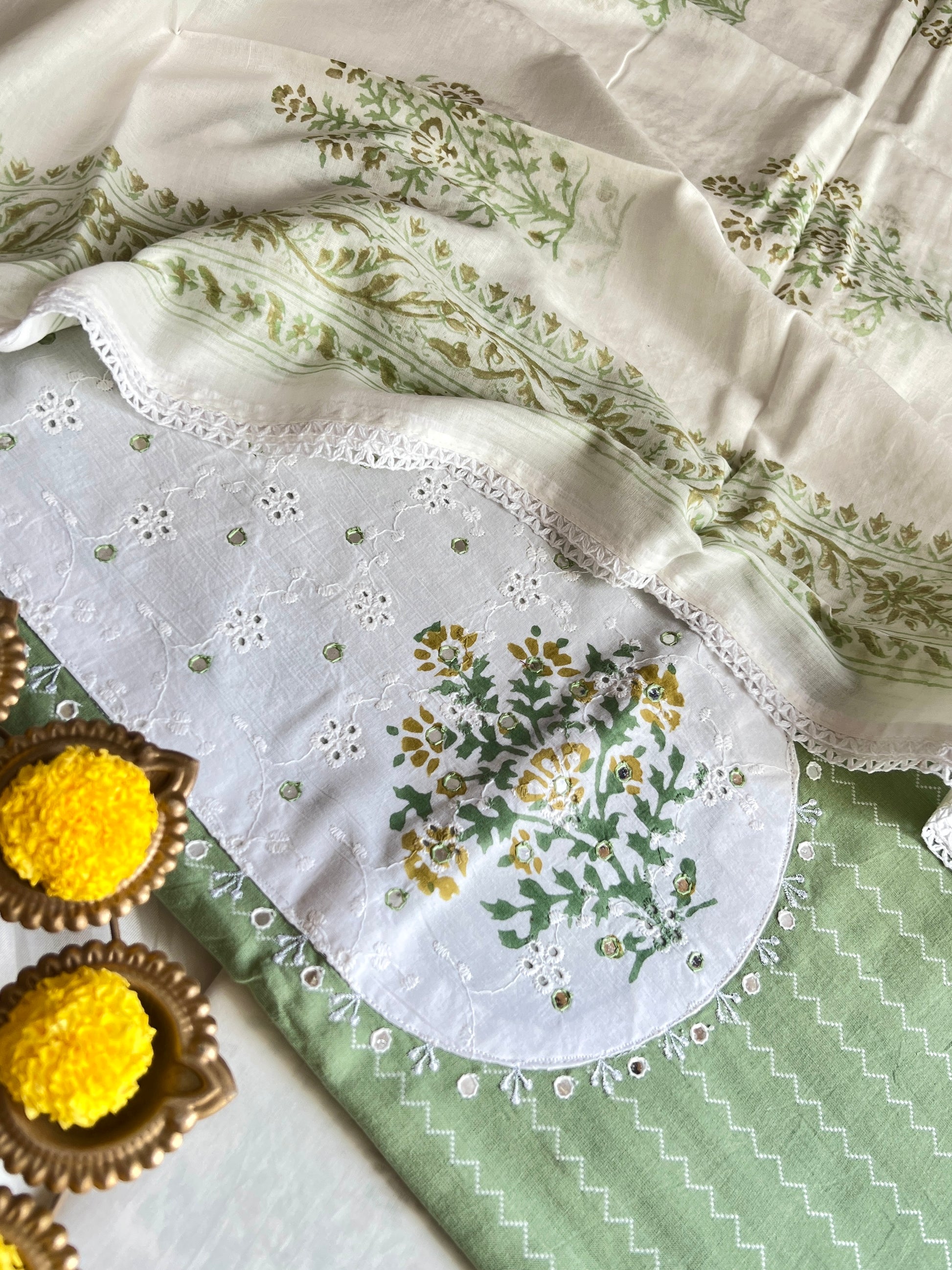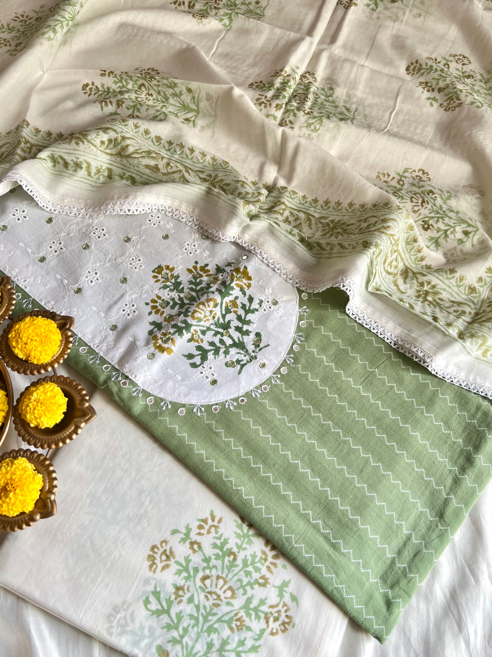 Dupatta - Pure Cotton Block Print Dupatta With Crochet All Four Side (2.5Mtr)