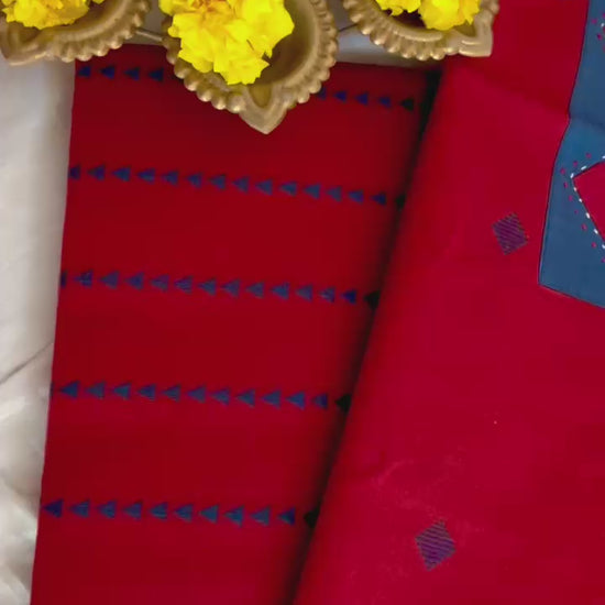 Kurta - Fine Handloom Cotton Kurta With Fine Kantha Work At Neckline (2.5Mtr)