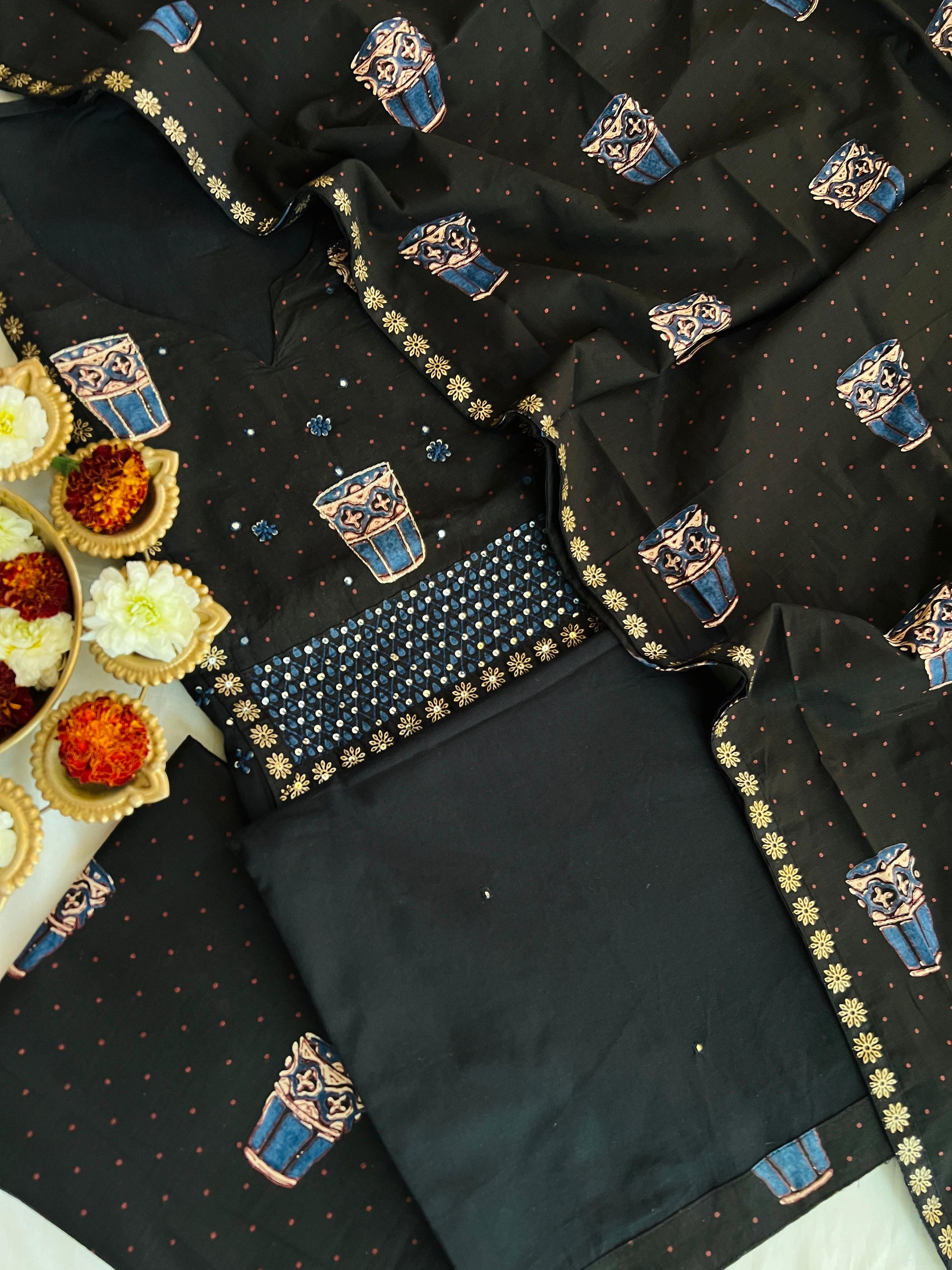 Bottom - Handloom Cotton Block Print Bottom (2.5Mtr)