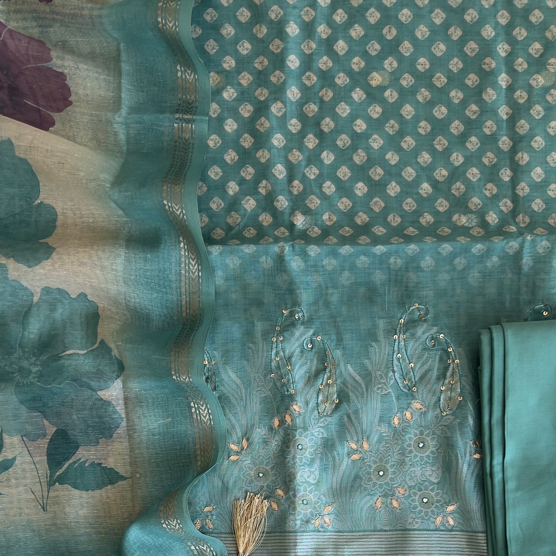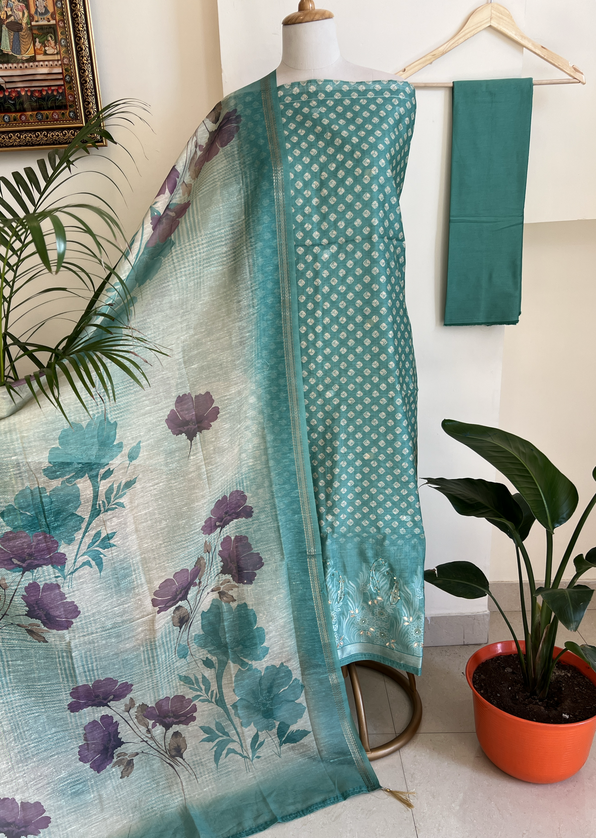 Kurta - Slub Chanderi Jamdani Handwork Kurta With Bandhani Print (2.5Mtr)